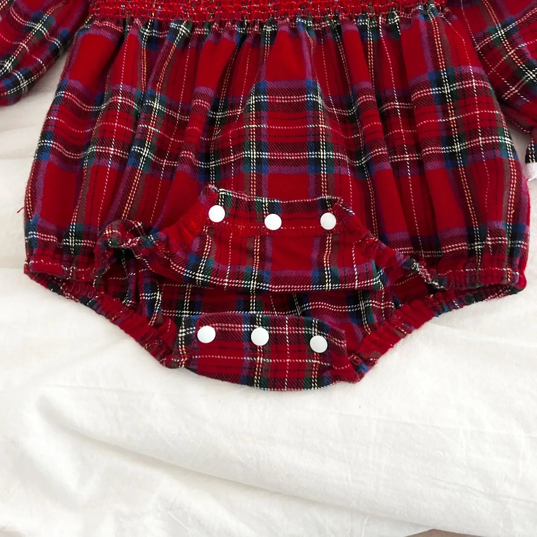 Christmas Infant Baby Girl Romper Autumn Winter Newborn Baby Girl Children Clothes Red Plaid Lapel Long Sleeved Newborn Romper - Leischner Products