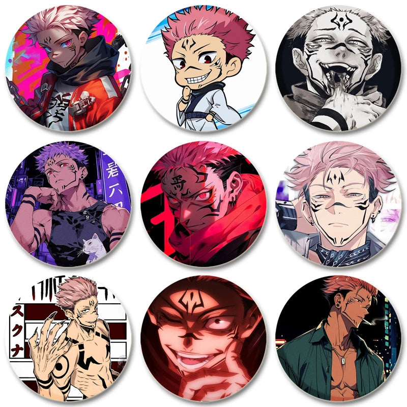 Anime Character Jujutsu Kaisen Ryomen Sukuna Badge Brooch Tinplate for Various Clothing Backpacks Jewelry Accessories Gift