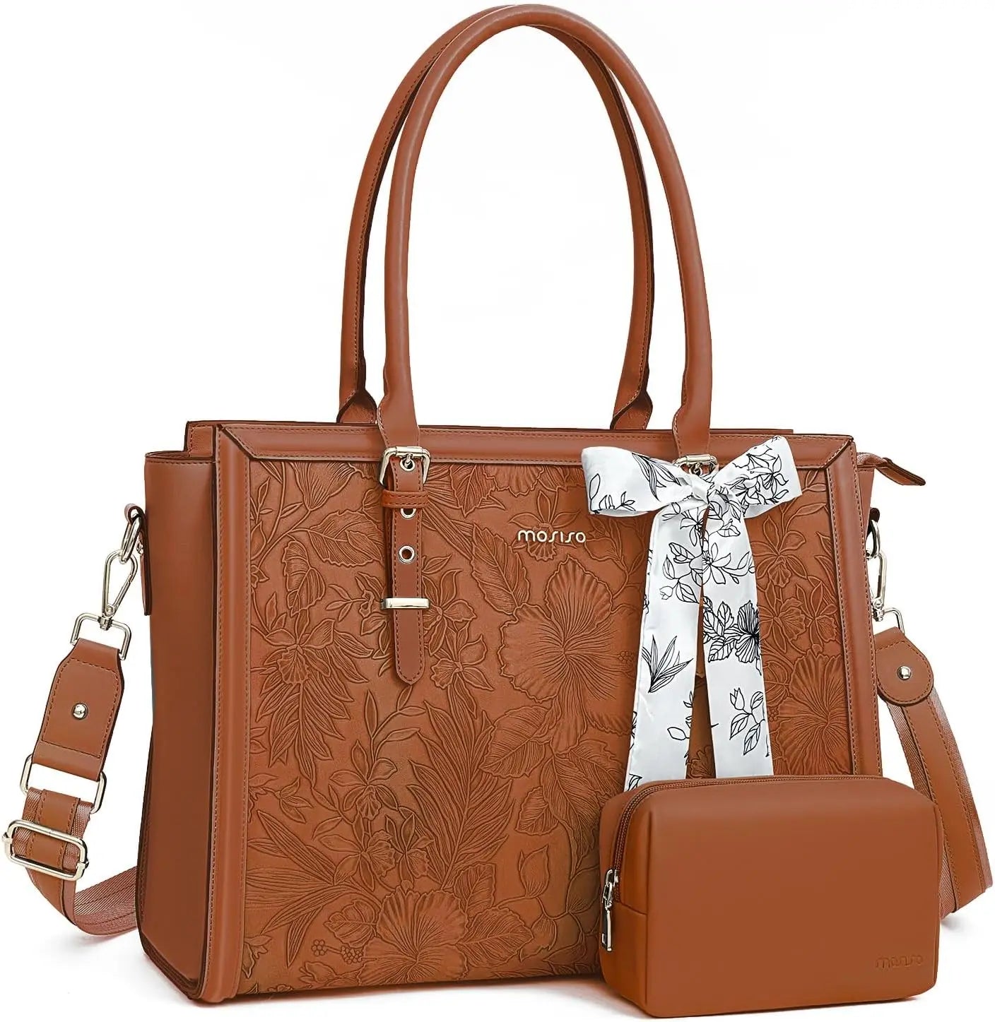 MOSISO Tote Bags 15.6 17.3 inch for Large Capacity Waterproof PU Leather for Women's Bag Bussiness Office Design Ladies Fashion