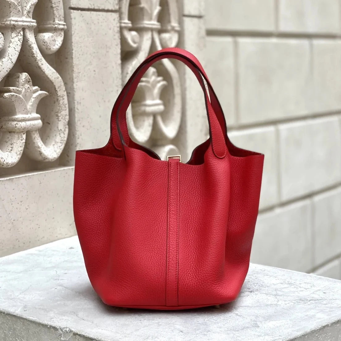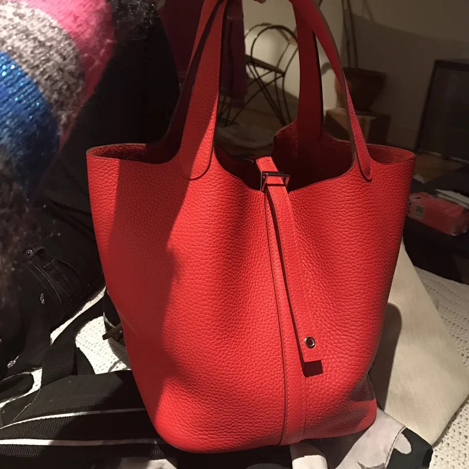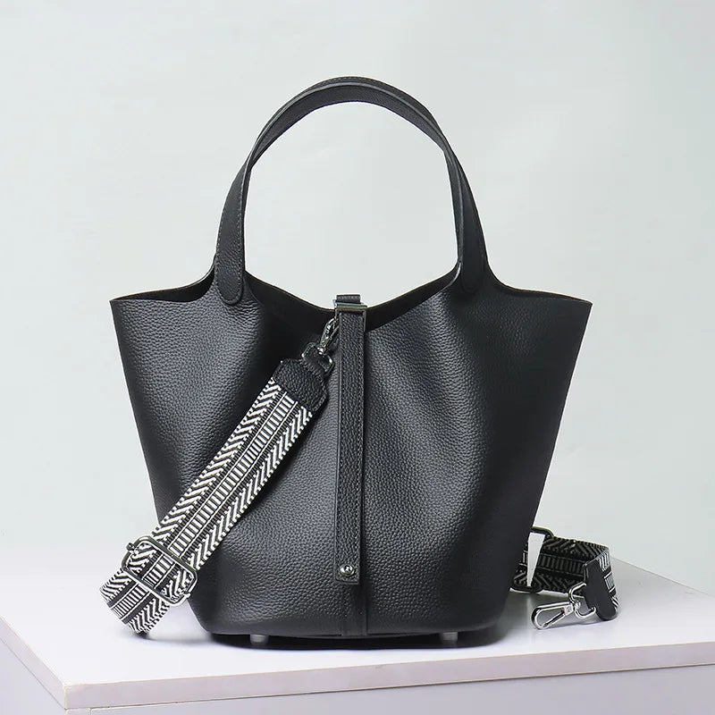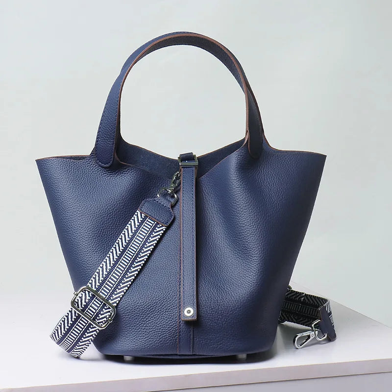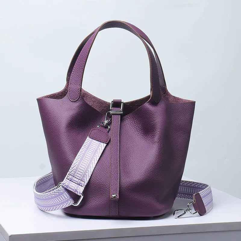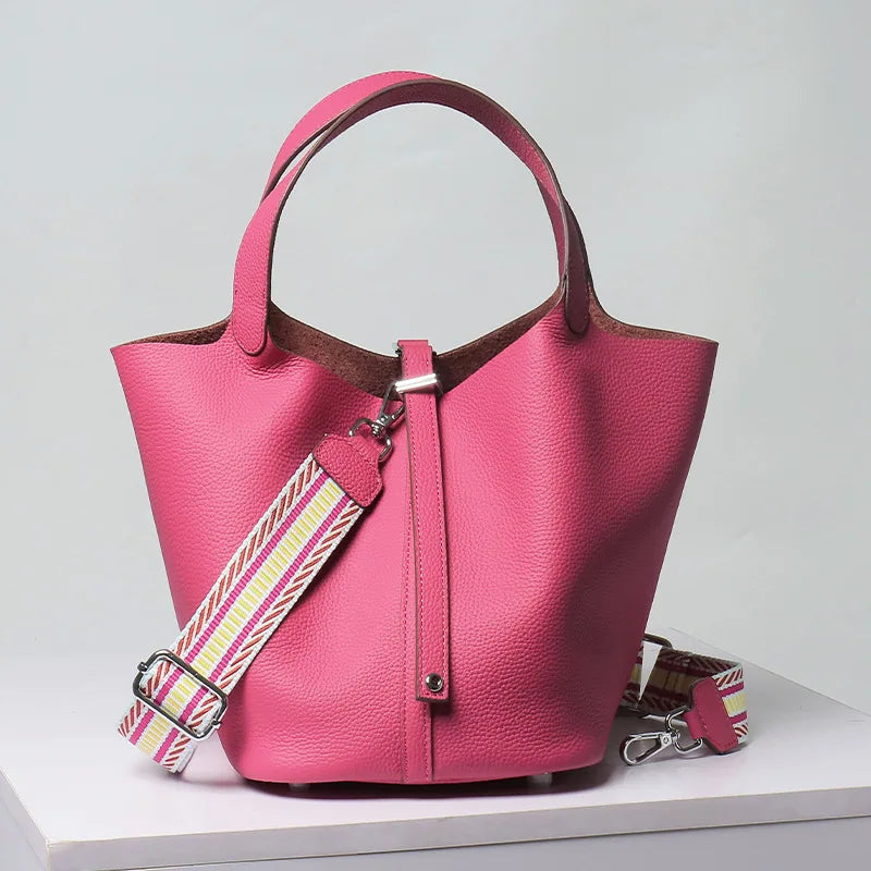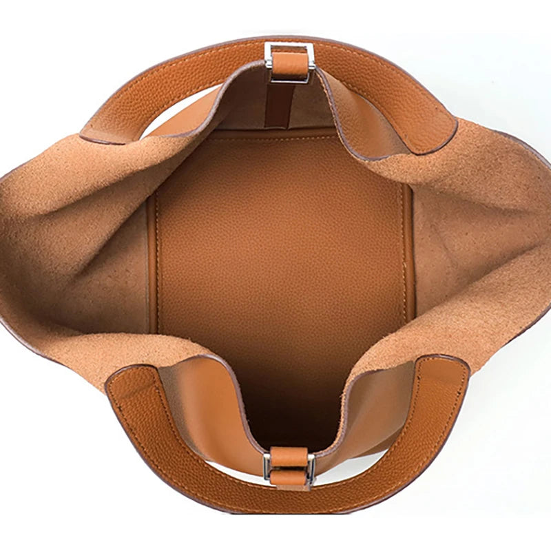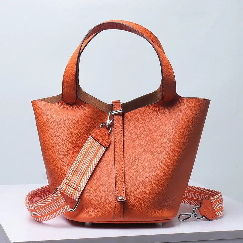 Top-layer braised vegetable basket bucket bag 2025 luxury design crossbody bag soft genuine leather silver lock women's handbag
