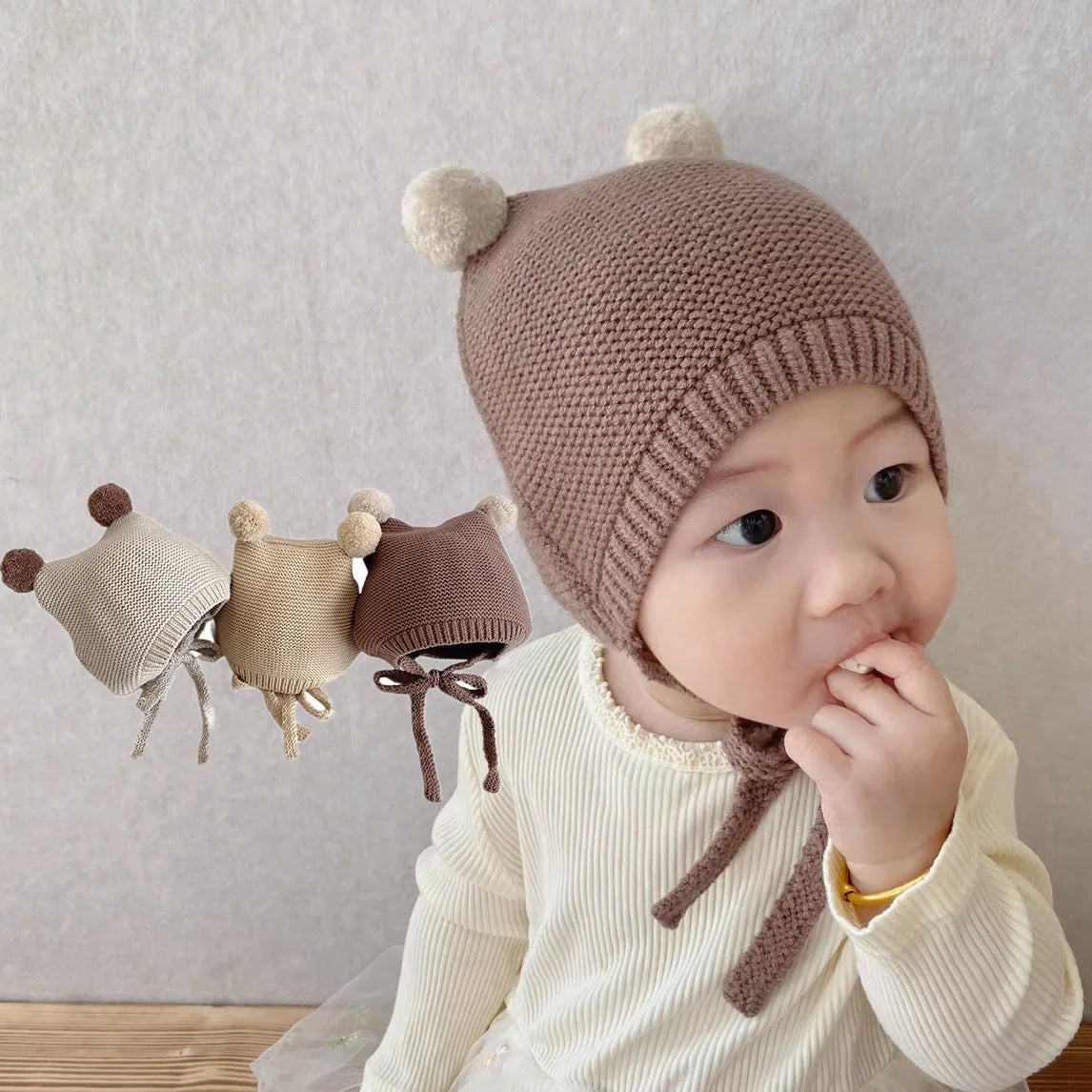 Baby Knitted Hat 0-2 Years Autumn Winter Ear Rabbit Knitted Kids Hats Newborn Little Girls Boys Cute Wool Beanies