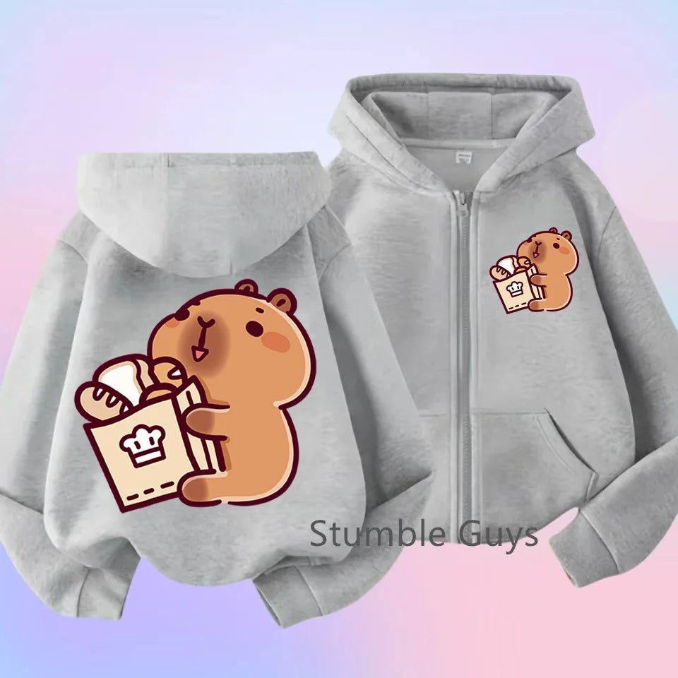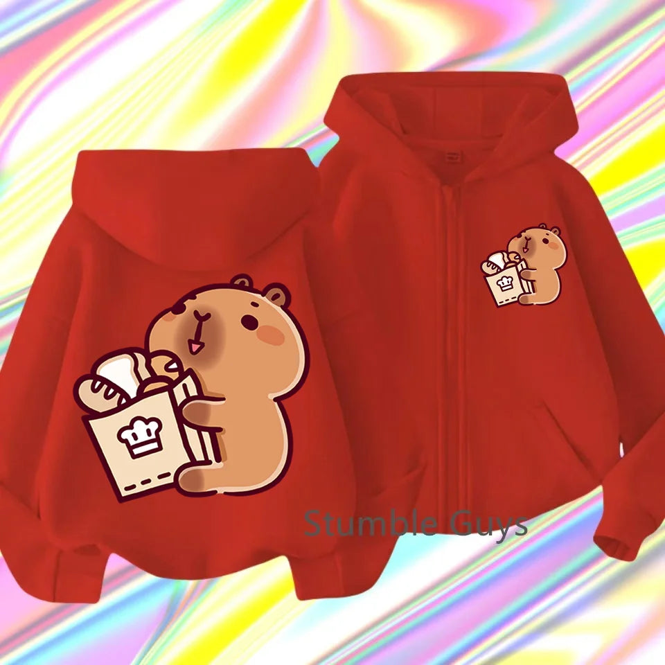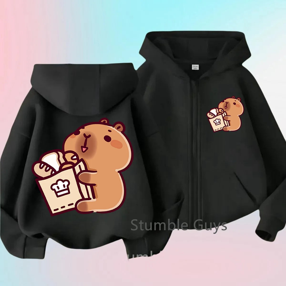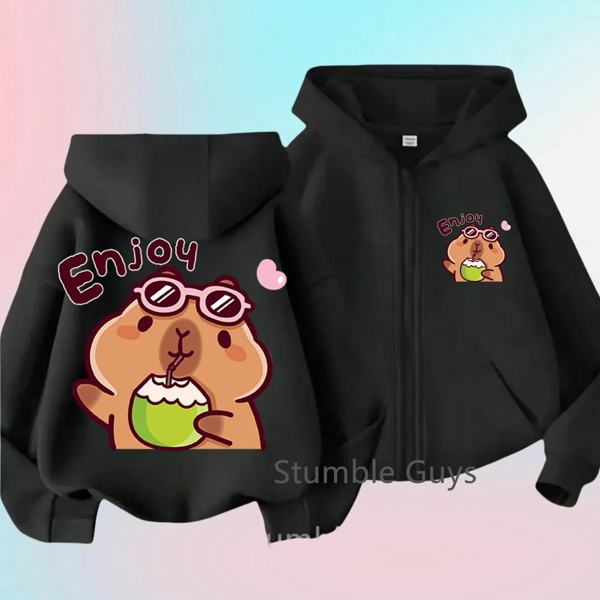 Children's capybara zip up hoodie, featuring zip up Capibala sportswear, comic clothing, and top hoodies for girls and boys