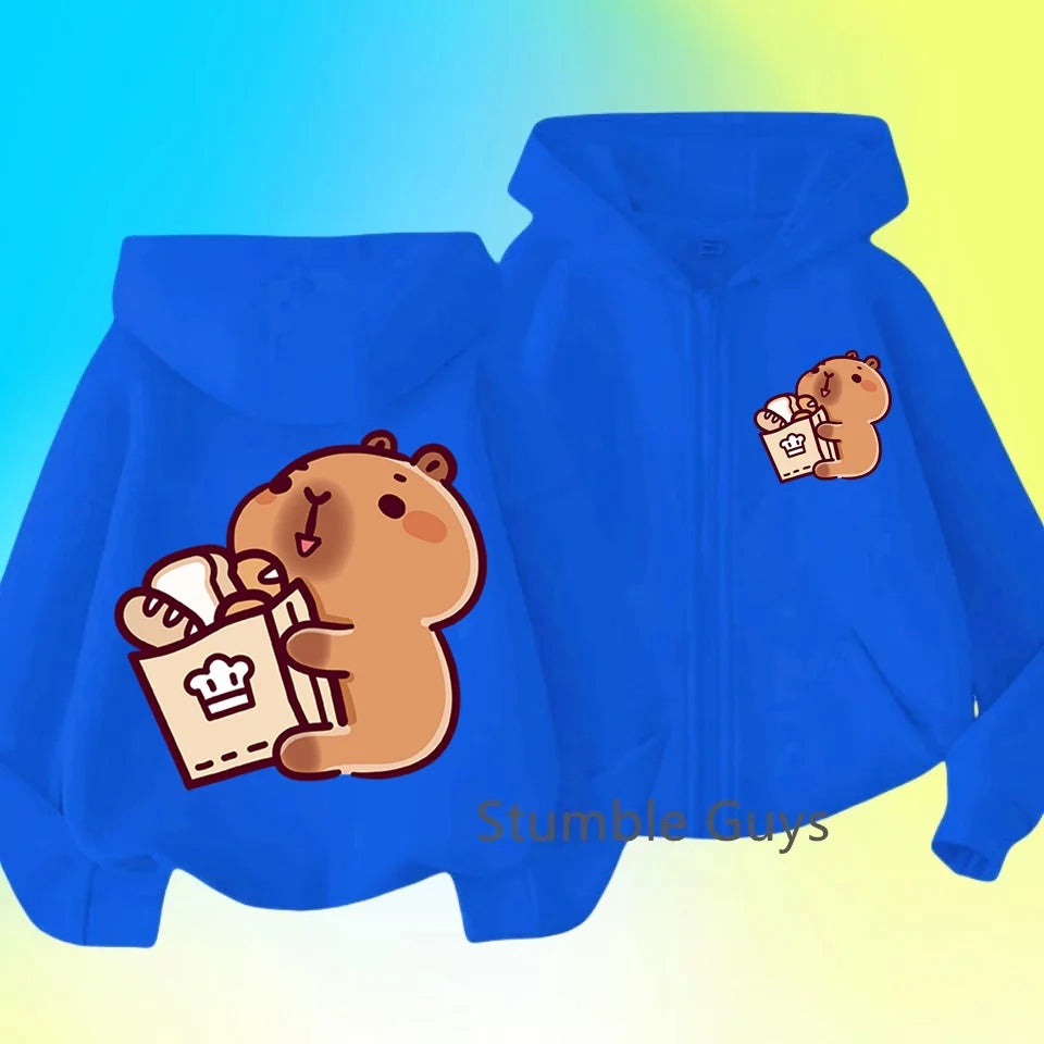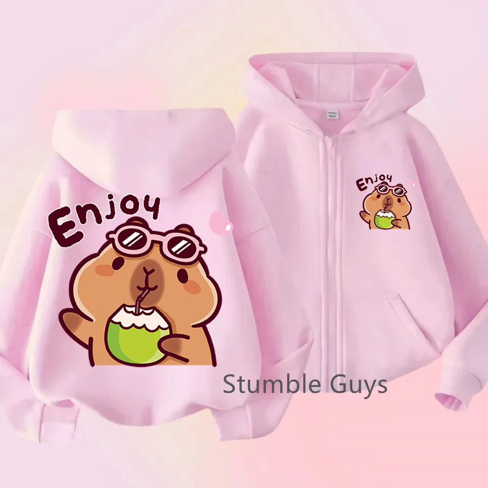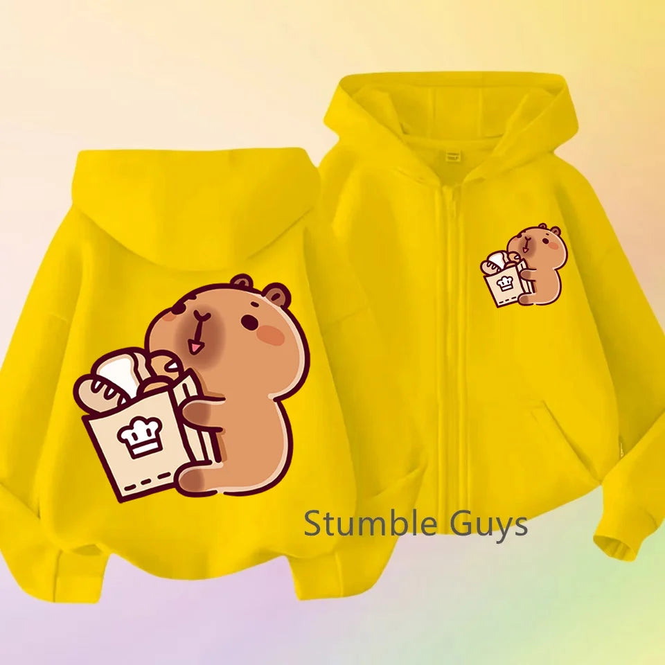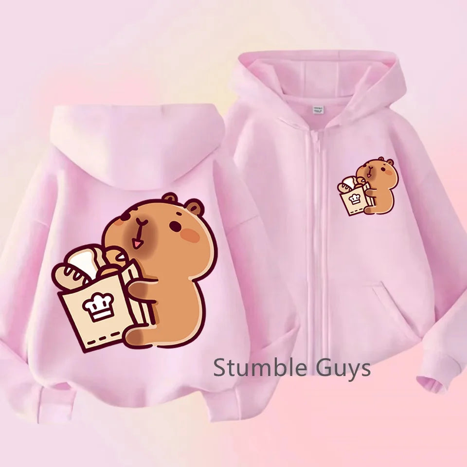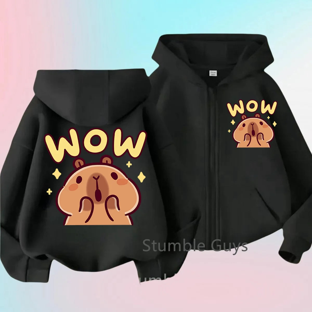 Children's capybara zip up hoodie, featuring zip up Capibala sportswear, comic clothing, and top hoodies for girls and boys