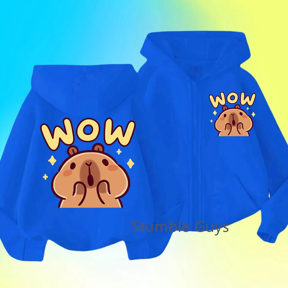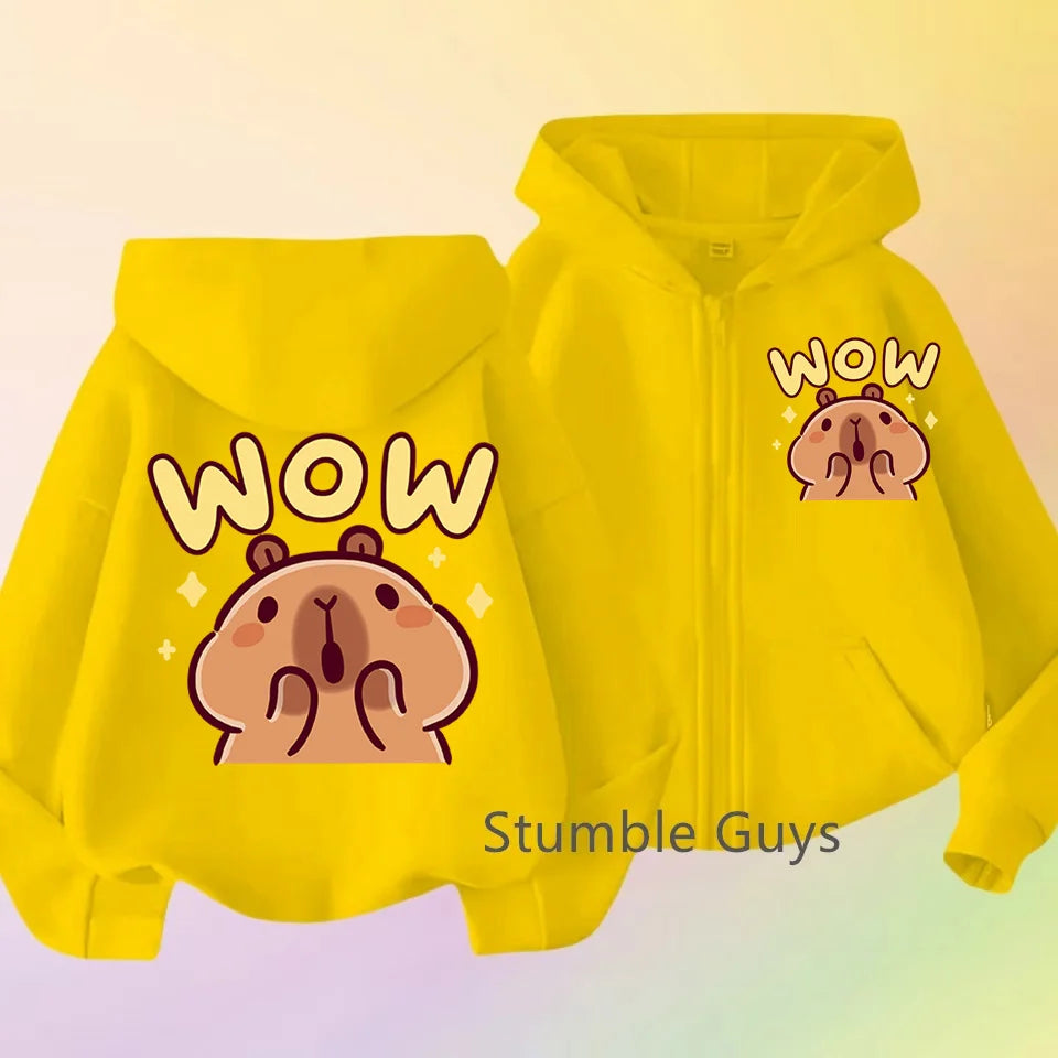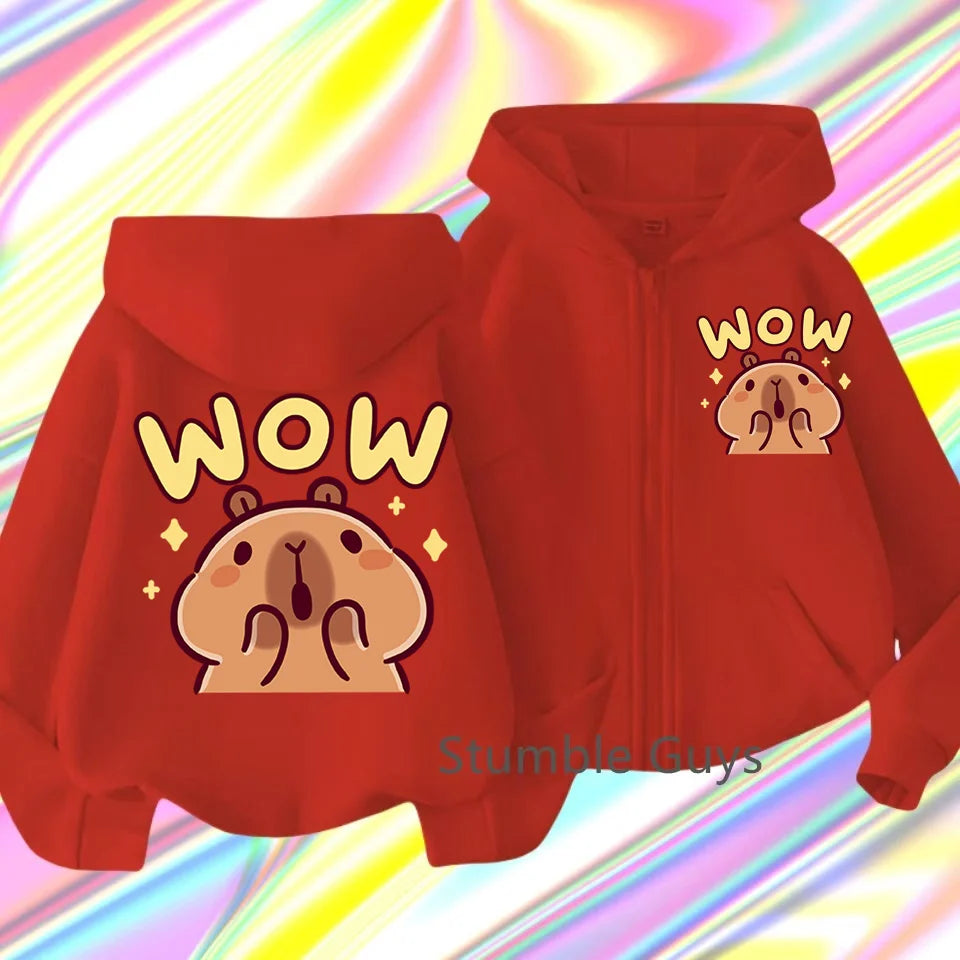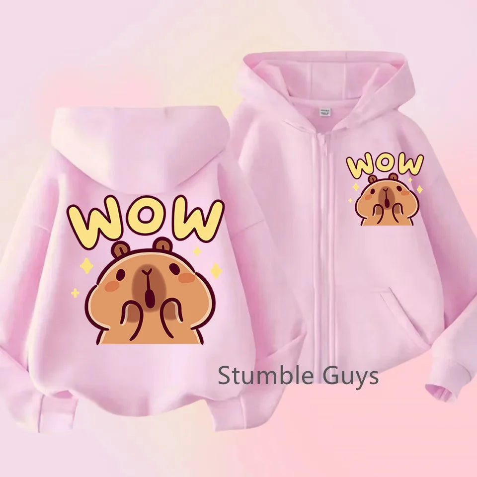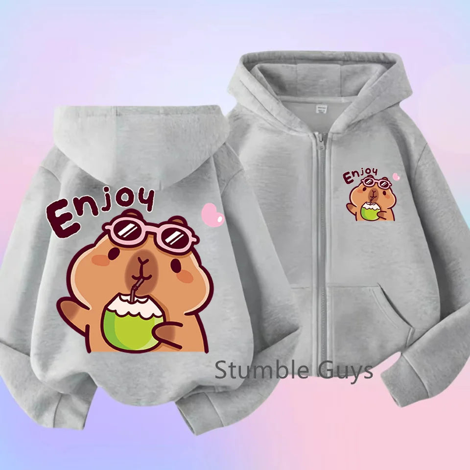 Children's capybara zip up hoodie, featuring zip up Capibala sportswear, comic clothing, and top hoodies for girls and boys