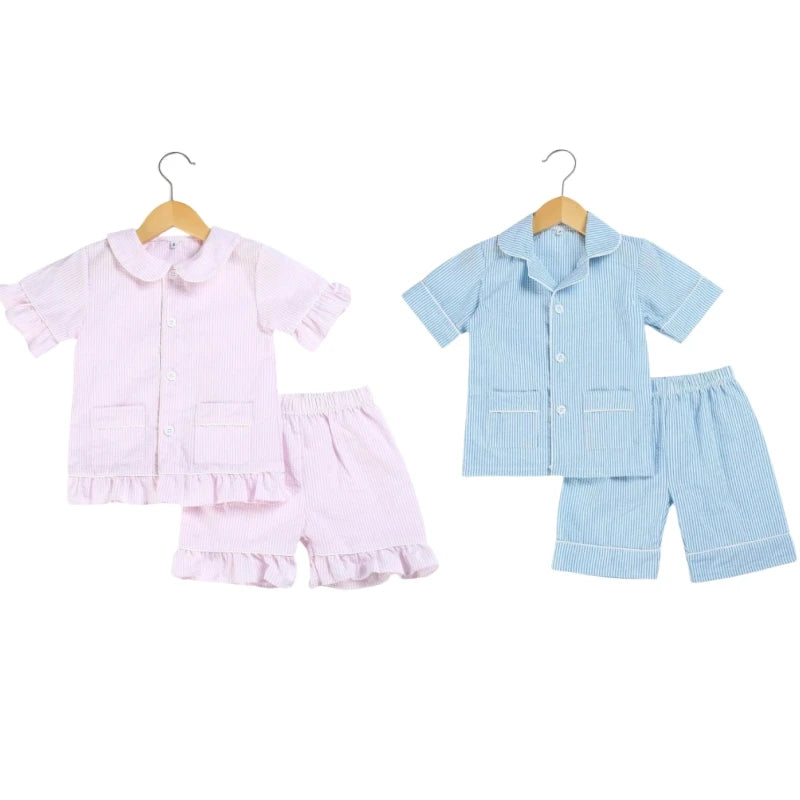 Ruffkids Summer Kids Pajamas Cotton Seersucker Sibling Matching Pjs Sleepwear Baby Clothes Loungewear Girls Boys Pyjamas Sets