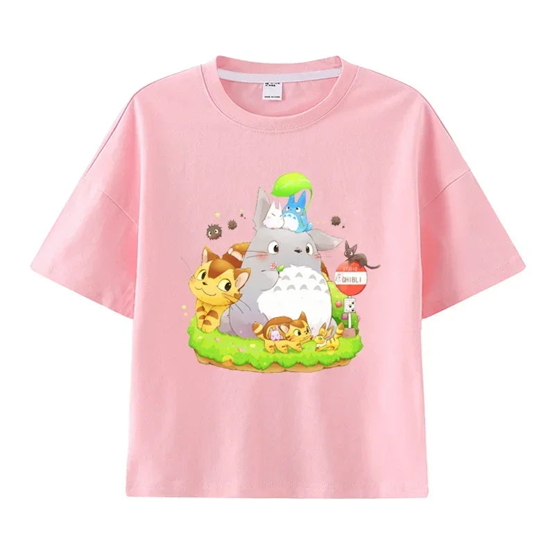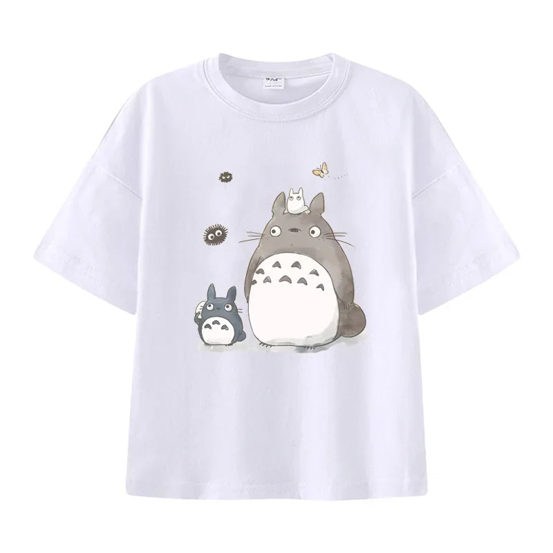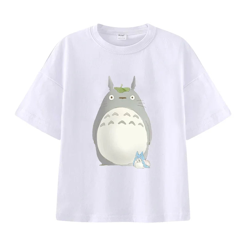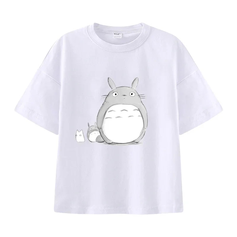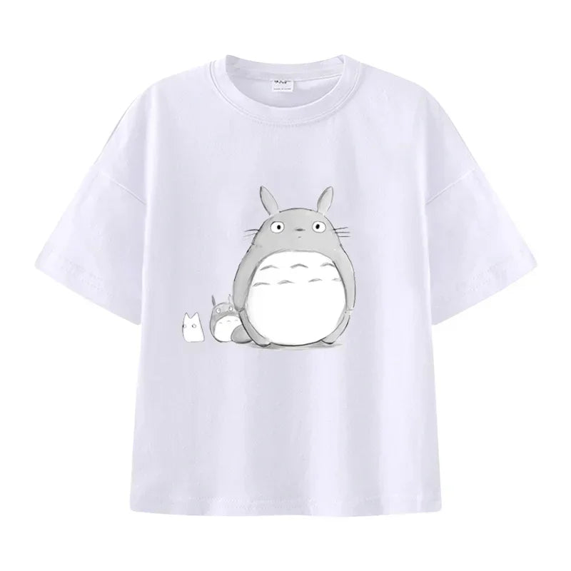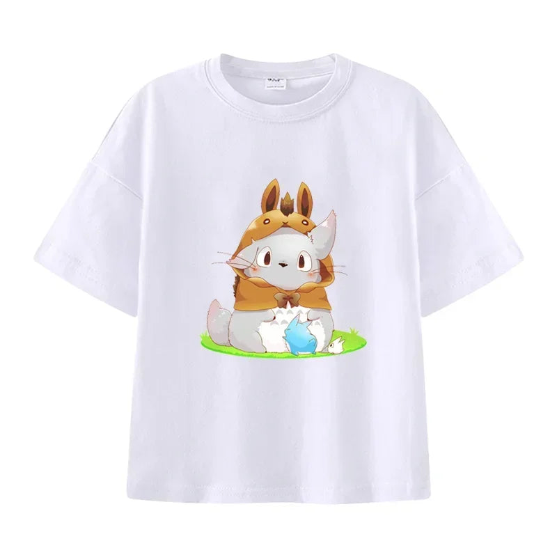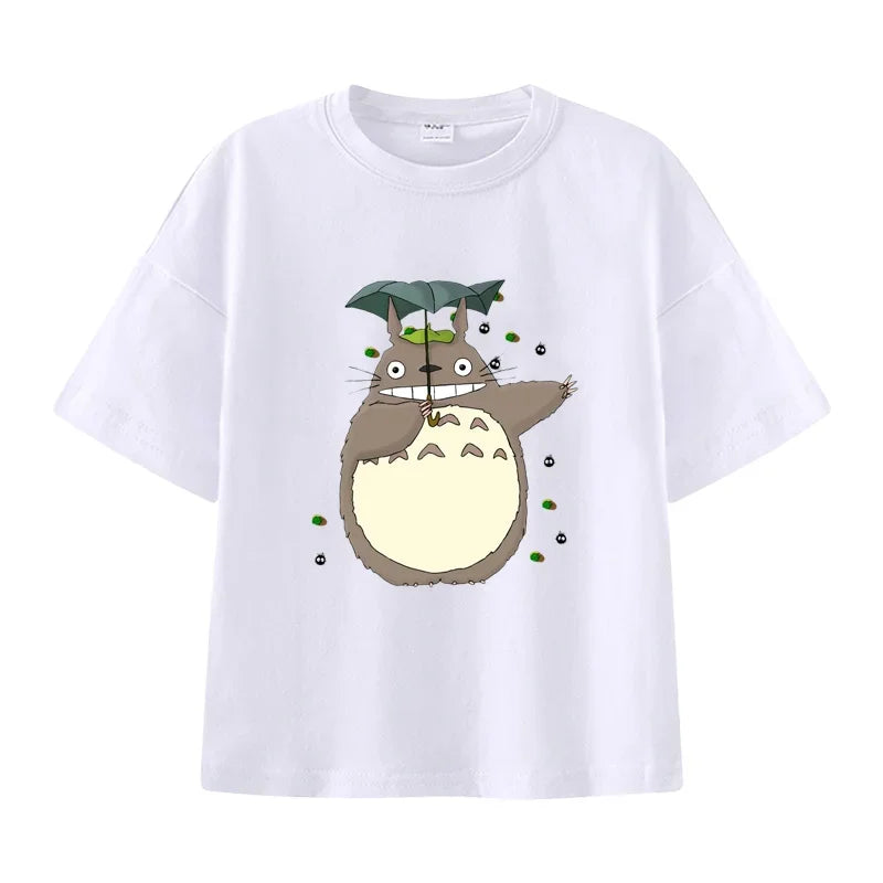 Summer Cartoon Miyazaki Totoro Print Children's Cotton T-shirt Short-sleeve Street Fashion Girls Clothes Cute Funny Kid Tees Top