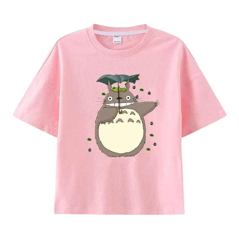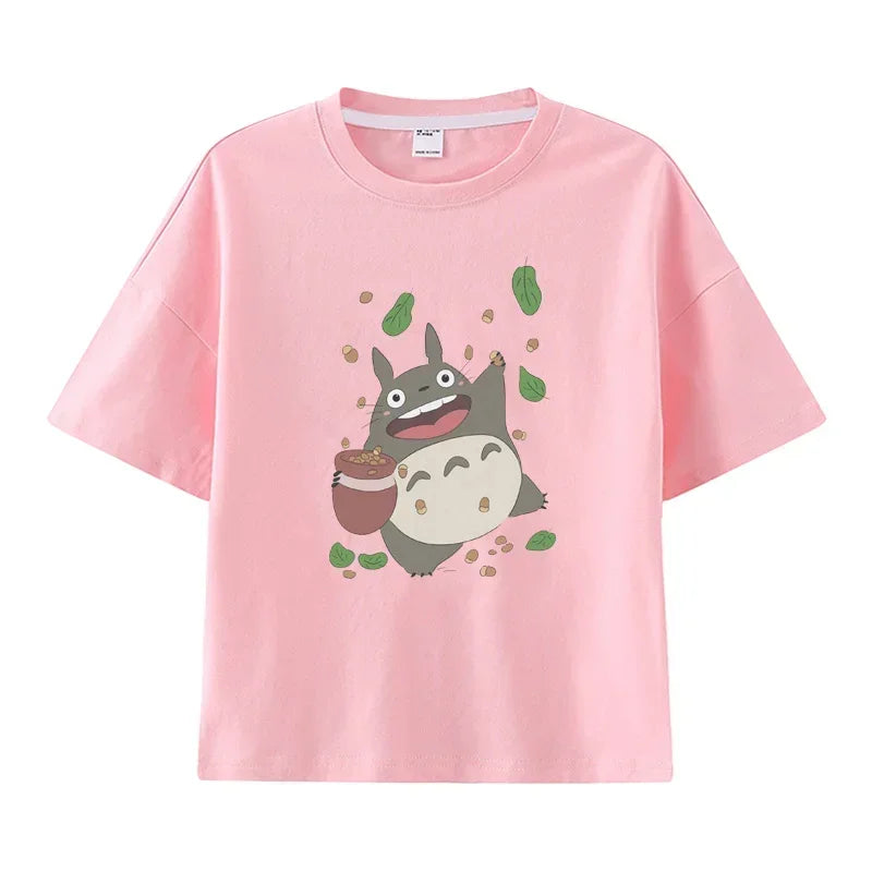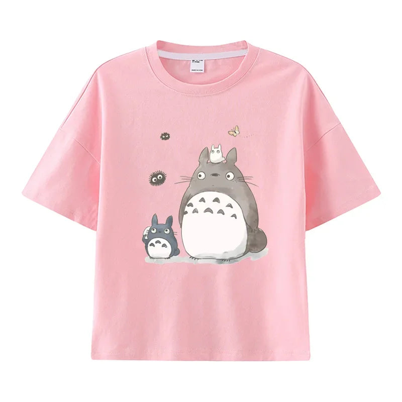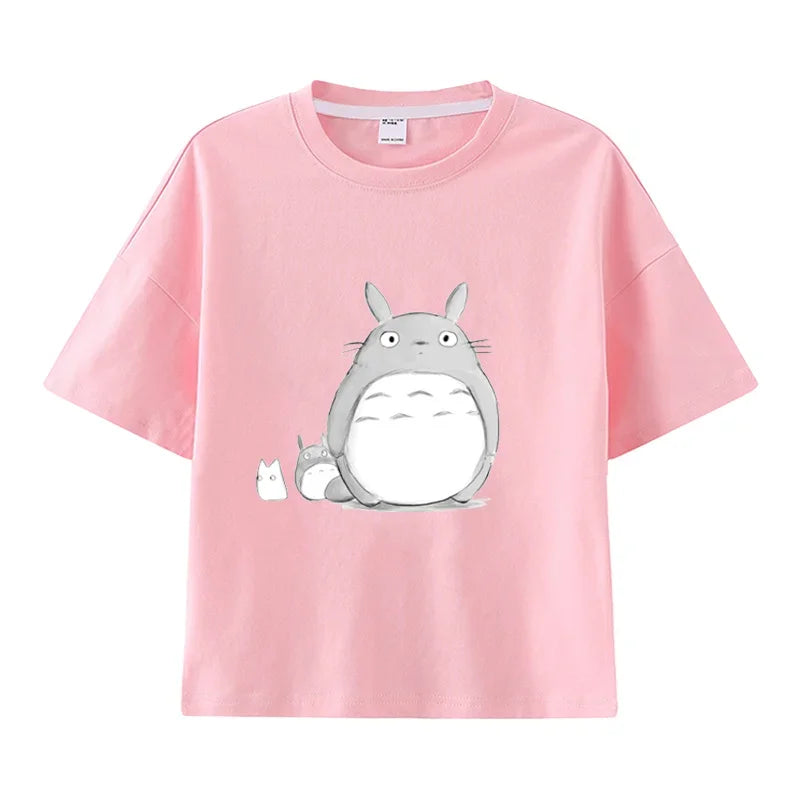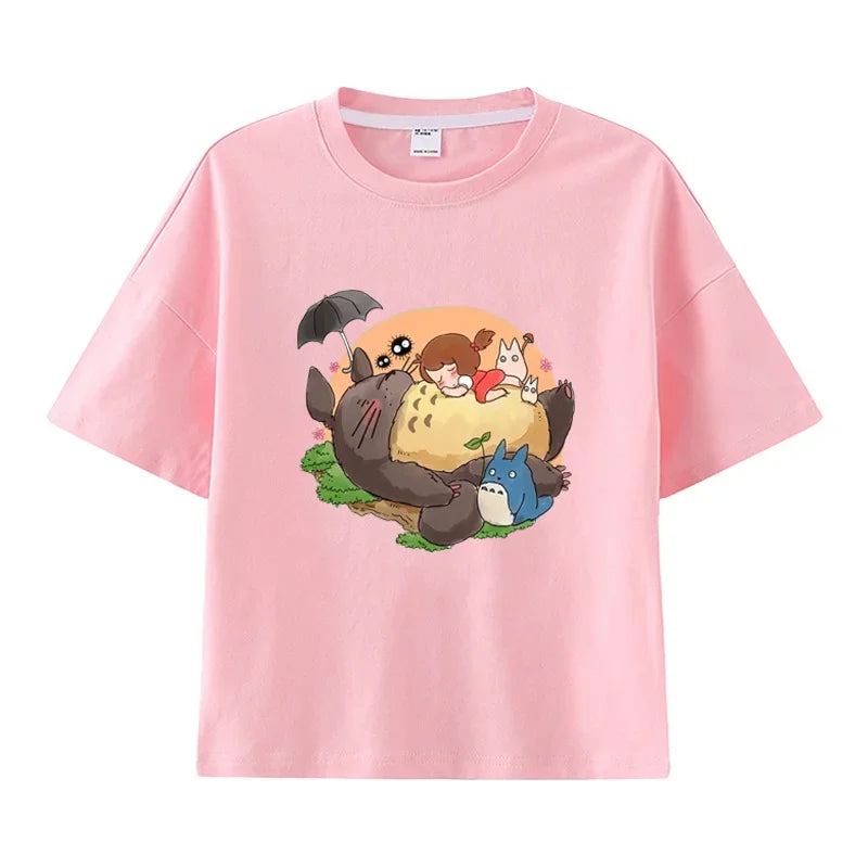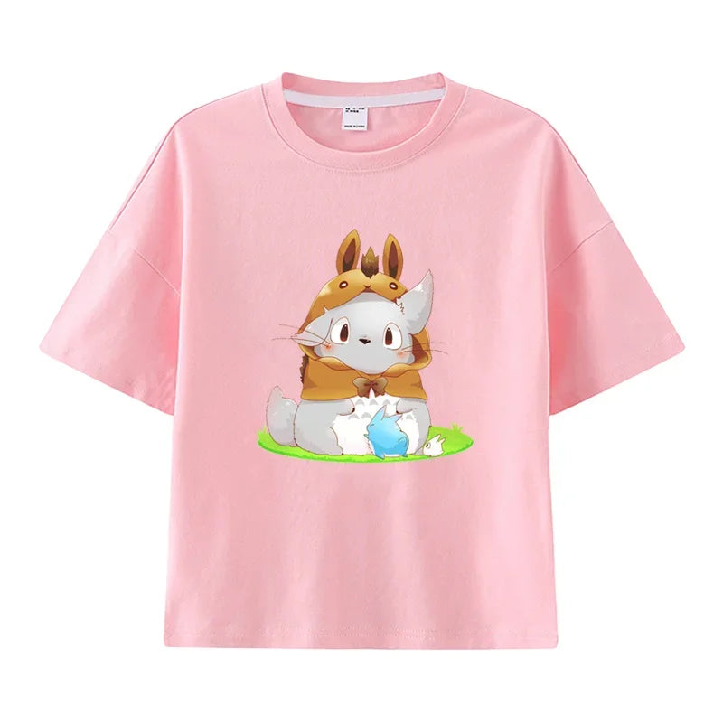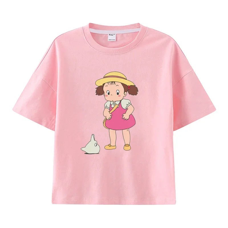 Summer Cartoon Miyazaki Totoro Print Children's Cotton T-shirt Short-sleeve Street Fashion Girls Clothes Cute Funny Kid Tees Top