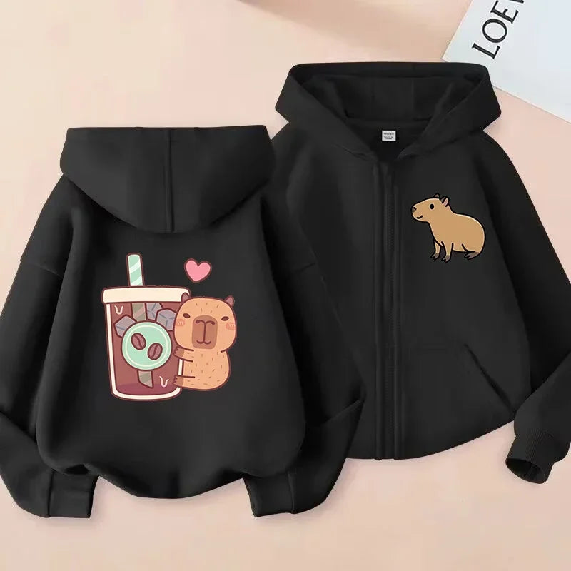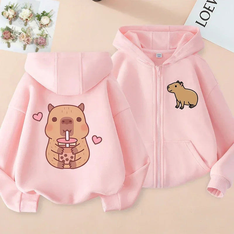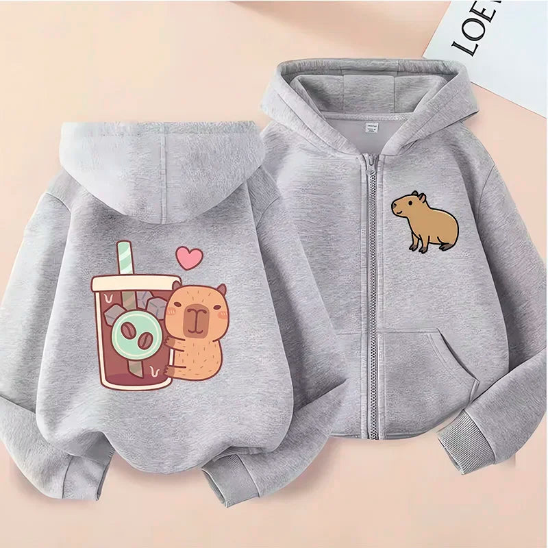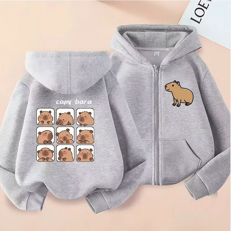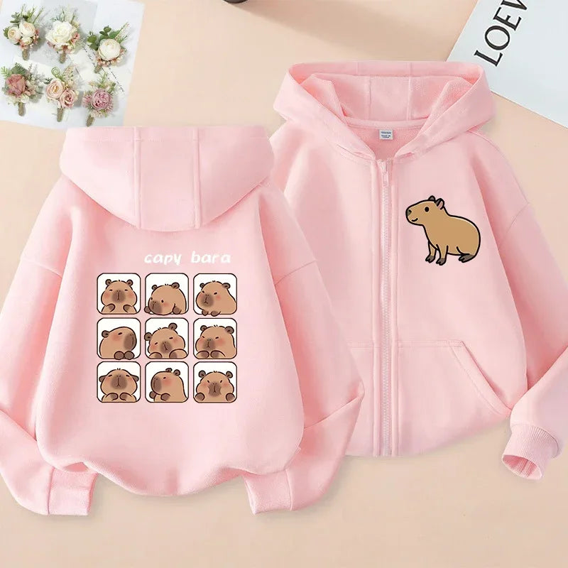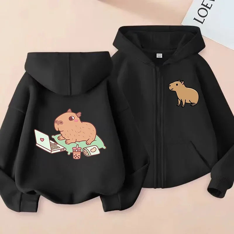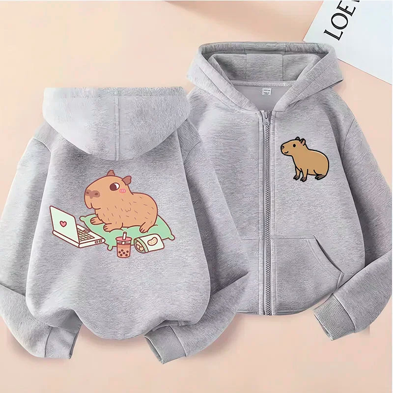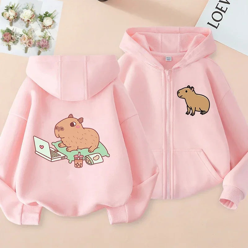 Zip Up Hoodie Kawaii Kids Capybara Children's Hoodie Zipper Children Capibara Sweatshirt Manga Clothes Kid Girl Boy Top Hoody