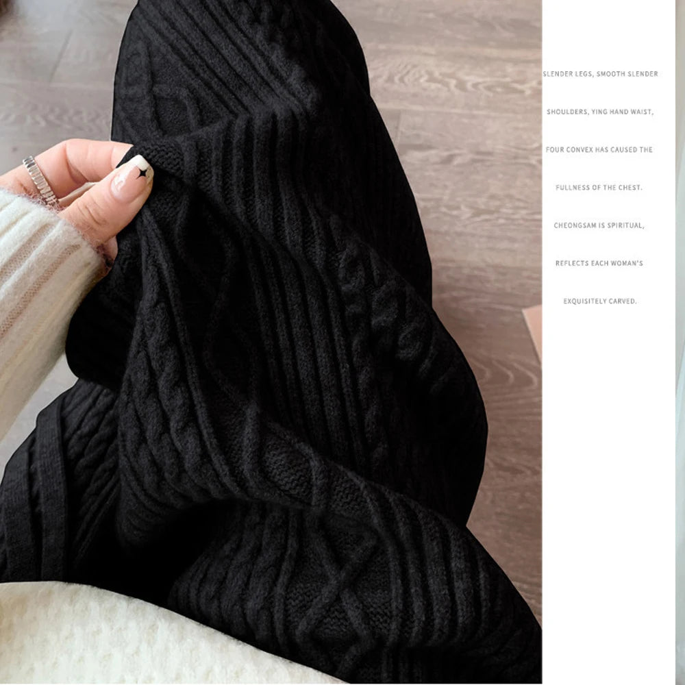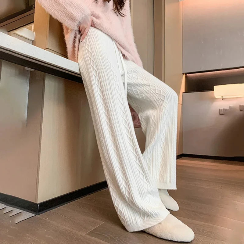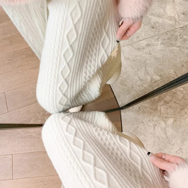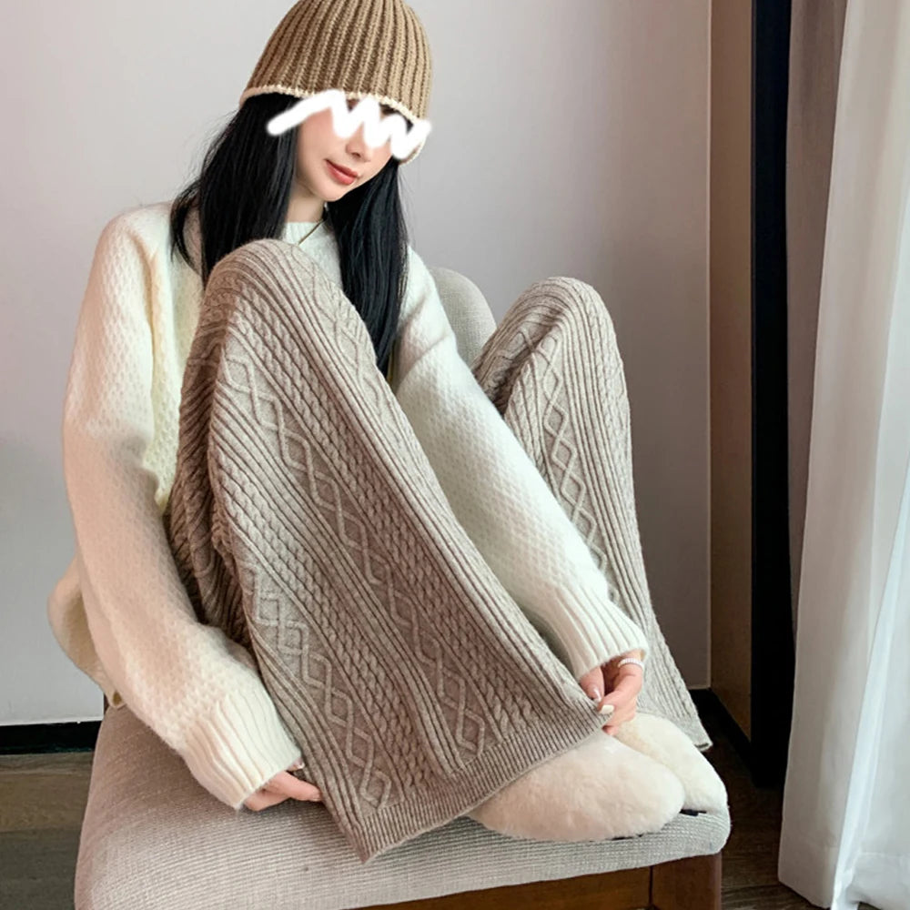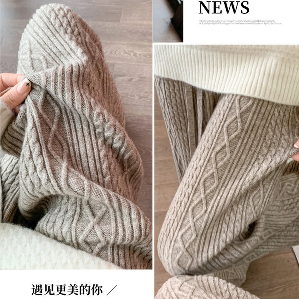 Autumn and Winter Knitted Wide-leg Pants for Women's Casual Loose Twist Pants Fashion High Waist Long Pants
