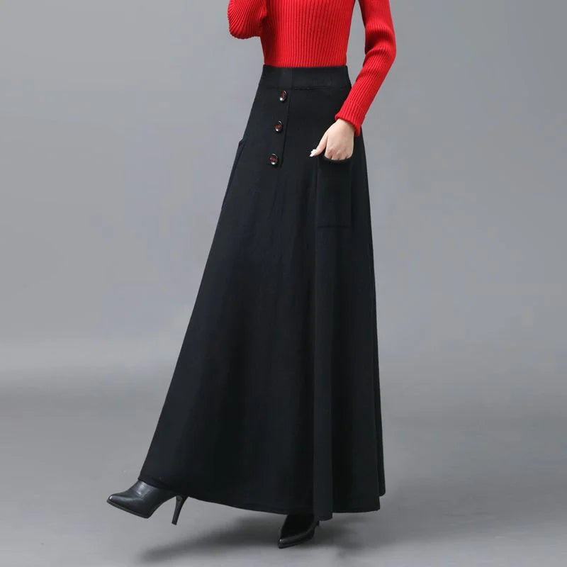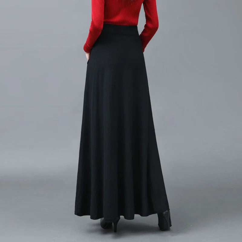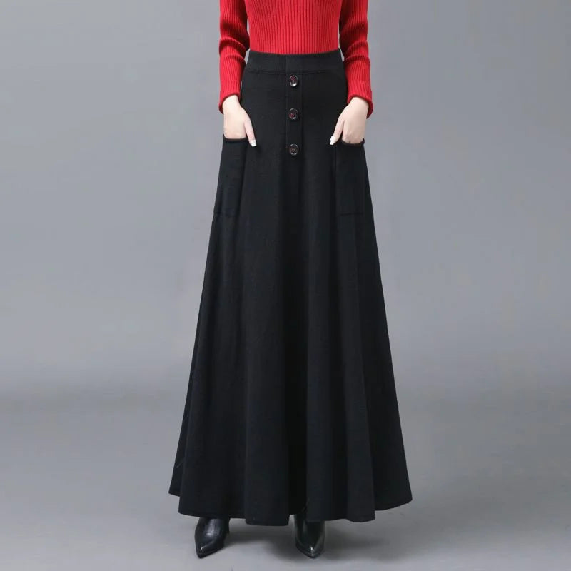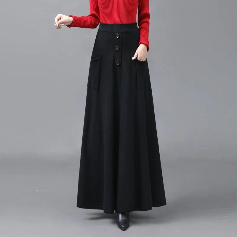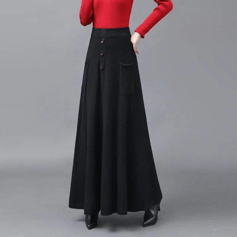 Extended Knitted Wool Skirt Spring Autumn Fashionable Versatile Skirt Pocket Large Hem Skirt Long Skirt