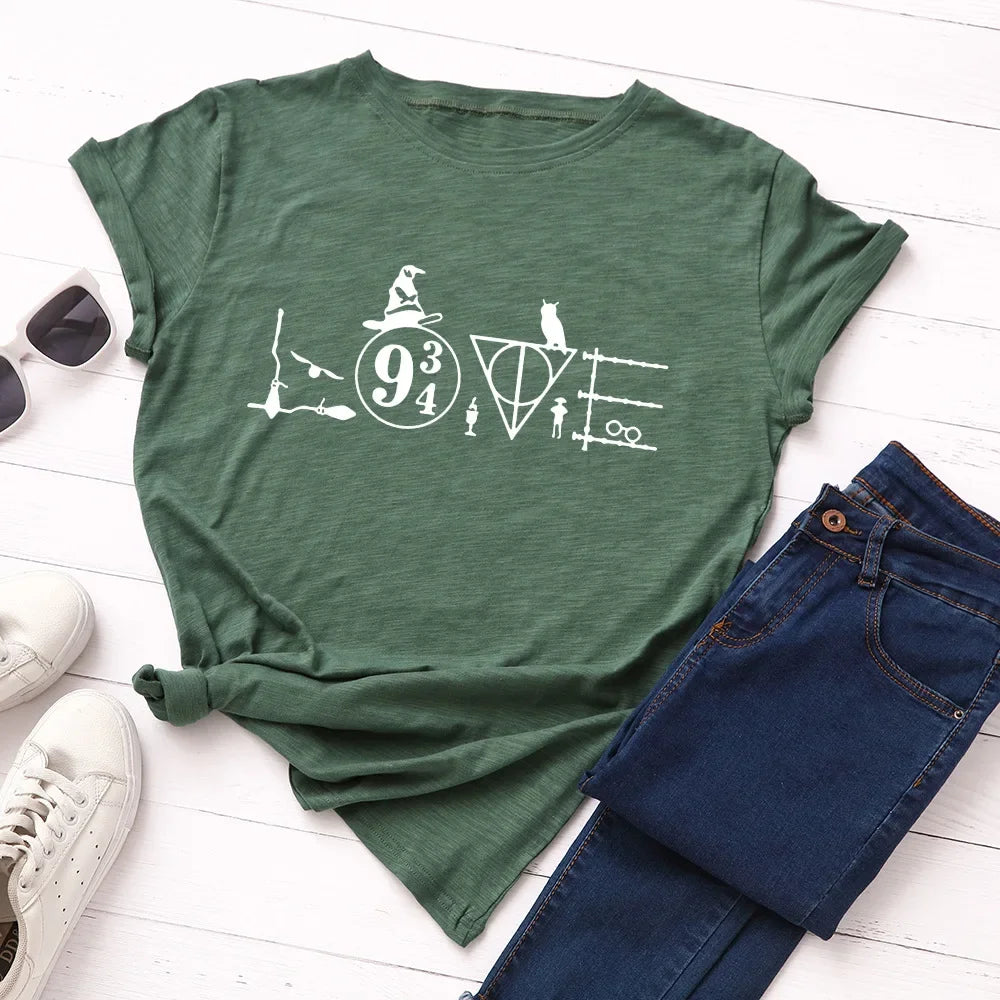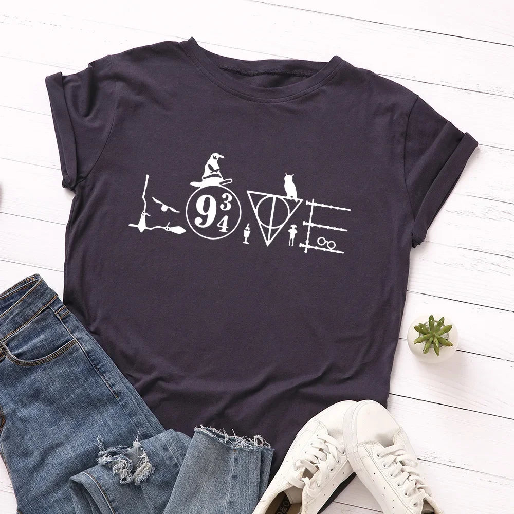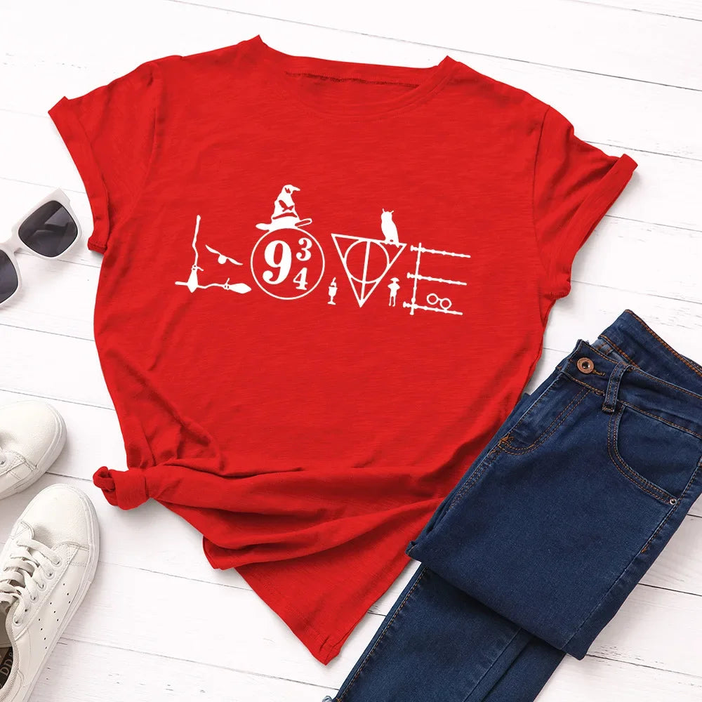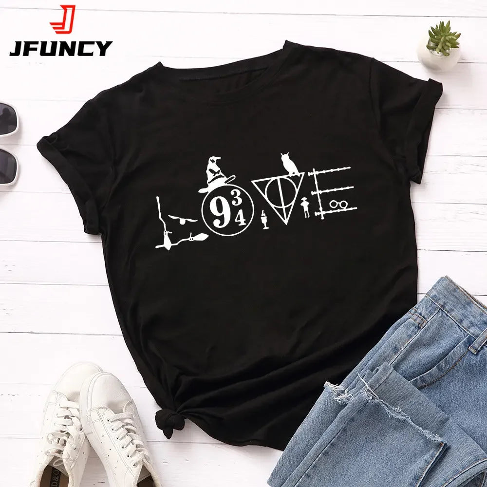 JFUNCY 5XL Women Cotton T Shirt Graphic Print Loose Tees Short Sleeve Woman Casual T-shirt Summer Female Tops
