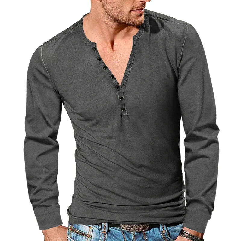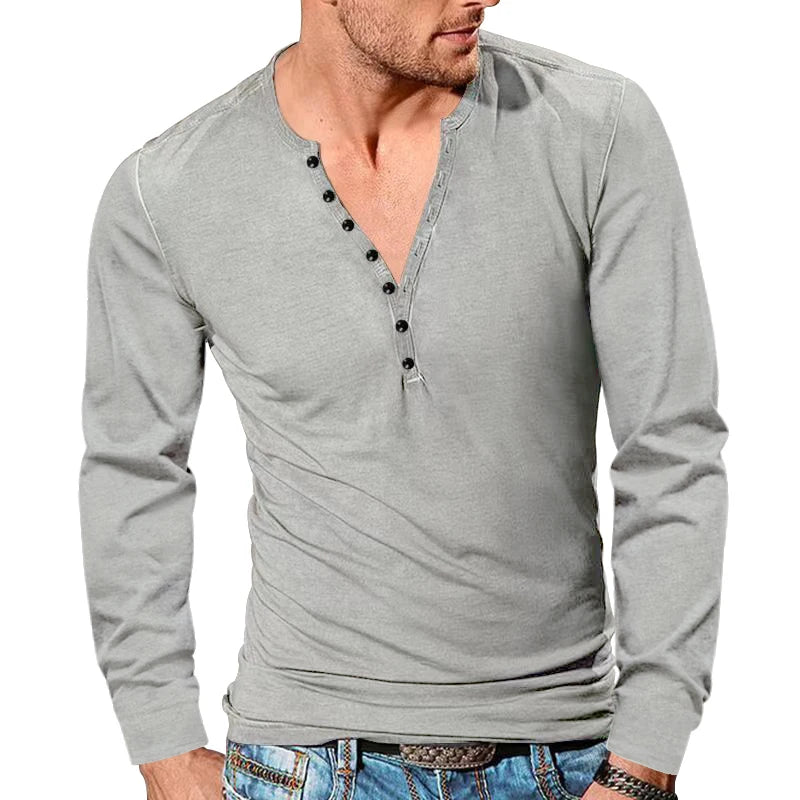 Men's Four Seasons Henry Shirt Fashion Classic Solid Color Long Sleeve Button-down T-shirt Autumn Men's V-neck Slim Stereo Tops