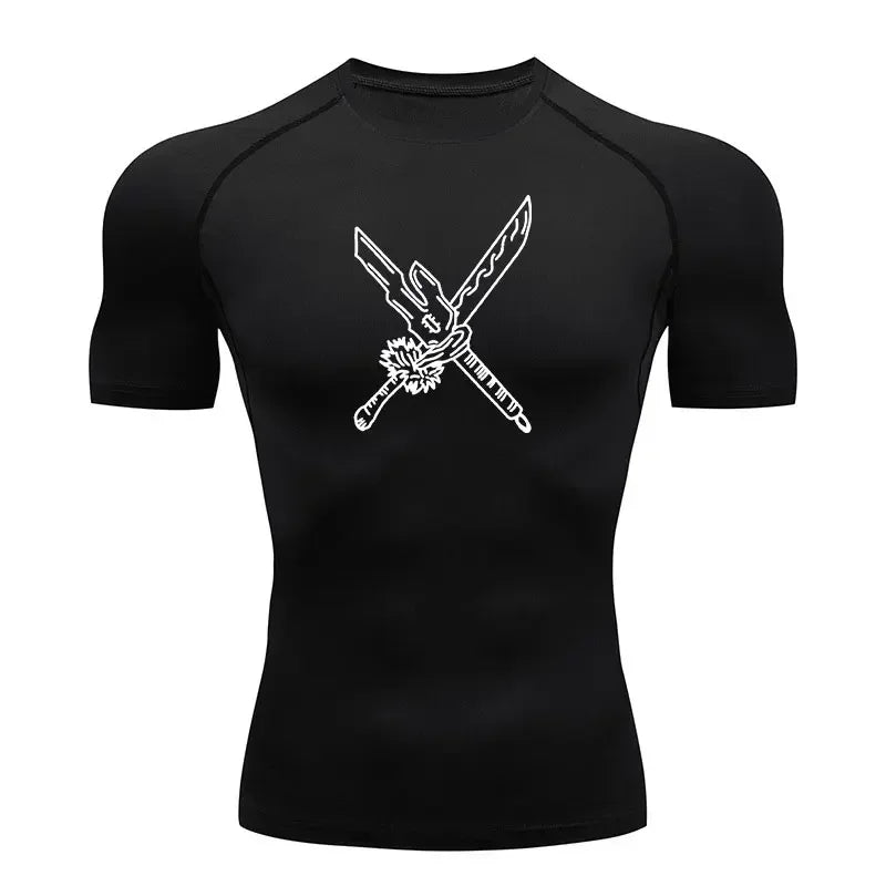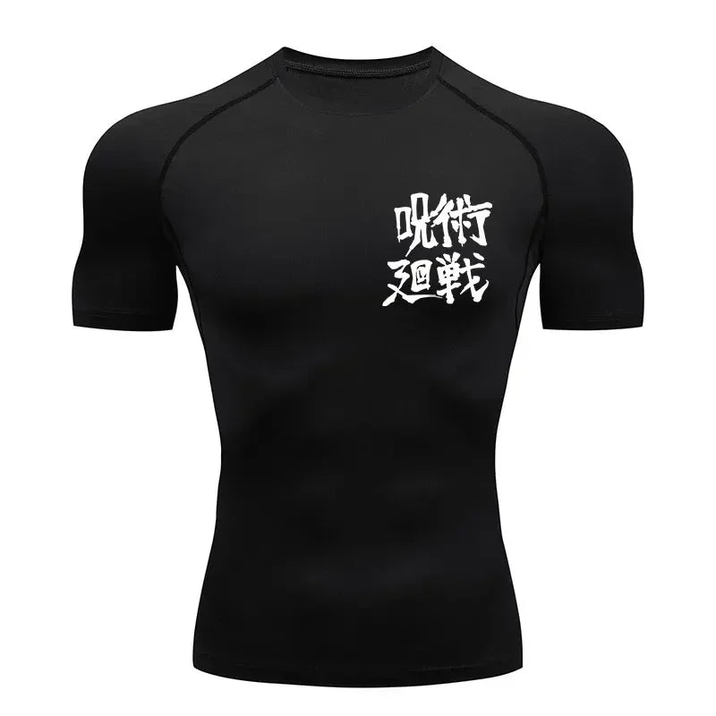 Men's Summer Fitness Gym Sports Running Short Sleeve T-shirt New Hot Selling Anime Jujube Kaisen Tight Shirt Short Sleeve