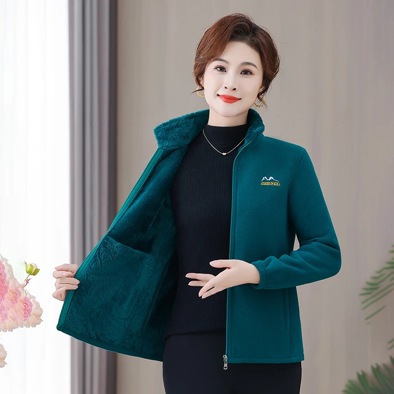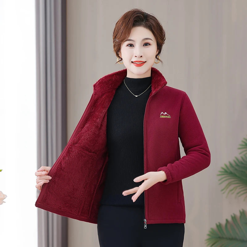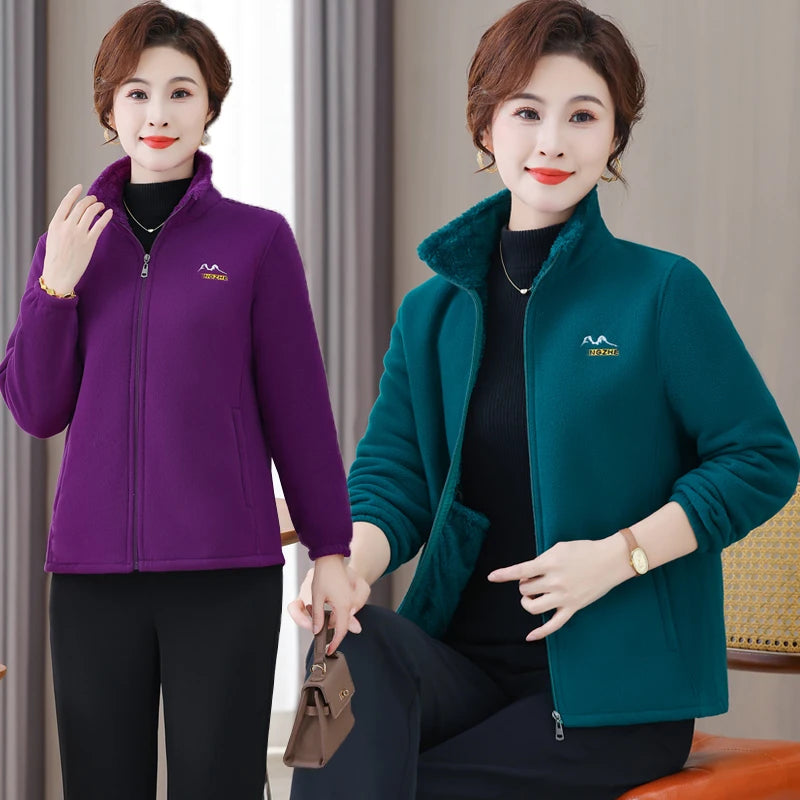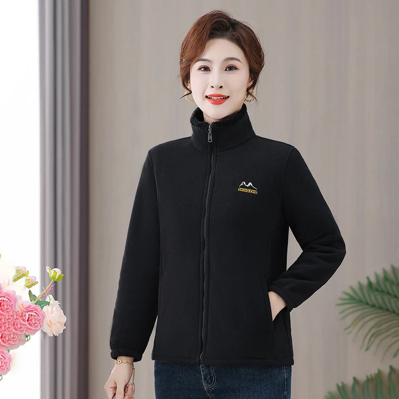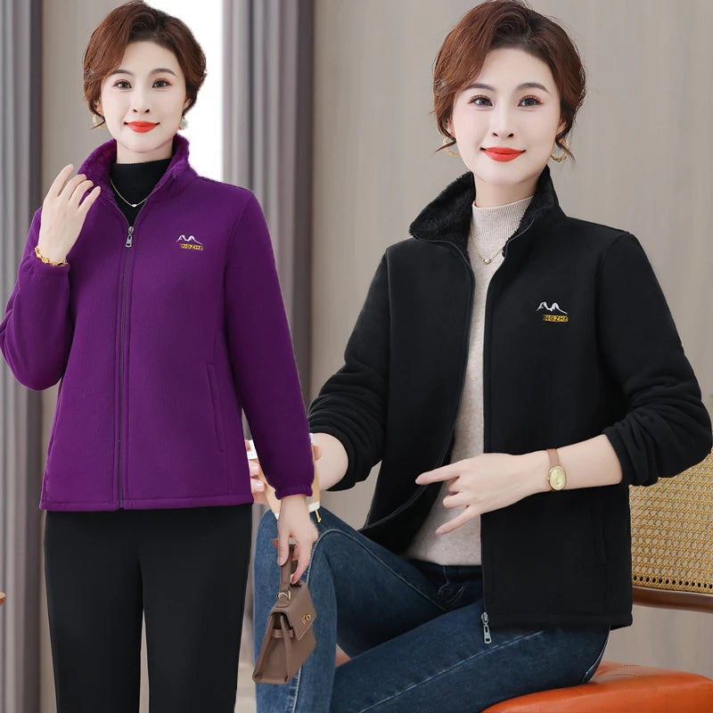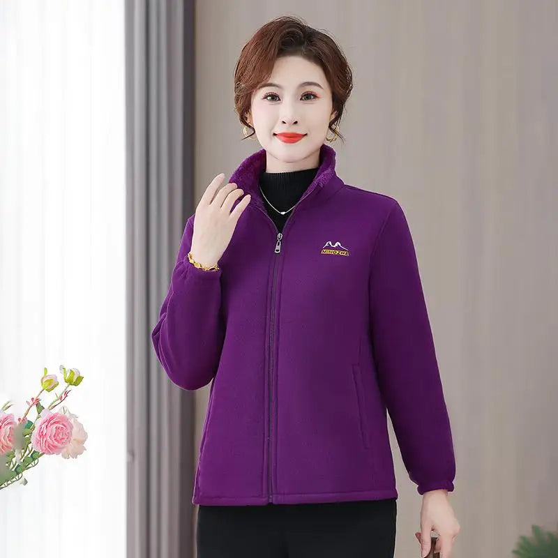 NEW Autumn Mother's Coral Velvet Fleece Stand collar Jacket Thicken Slim Warm Coat Casual Women's Zipper Sweatshirts tops