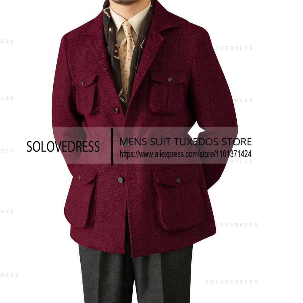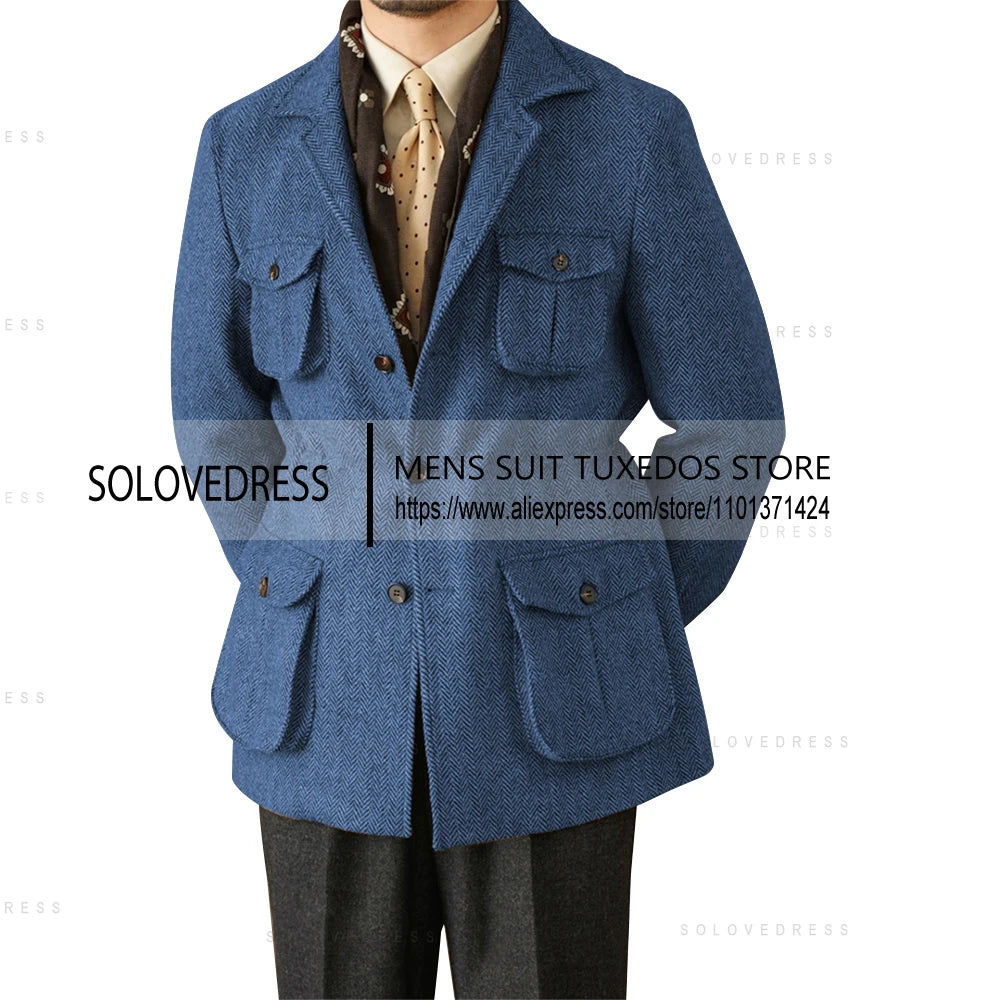 One Pieces Suits Herringbone Slim Fit Single Breasted Men's Suits Wedding Suits 4 Real Pocket (Just One Jacket)