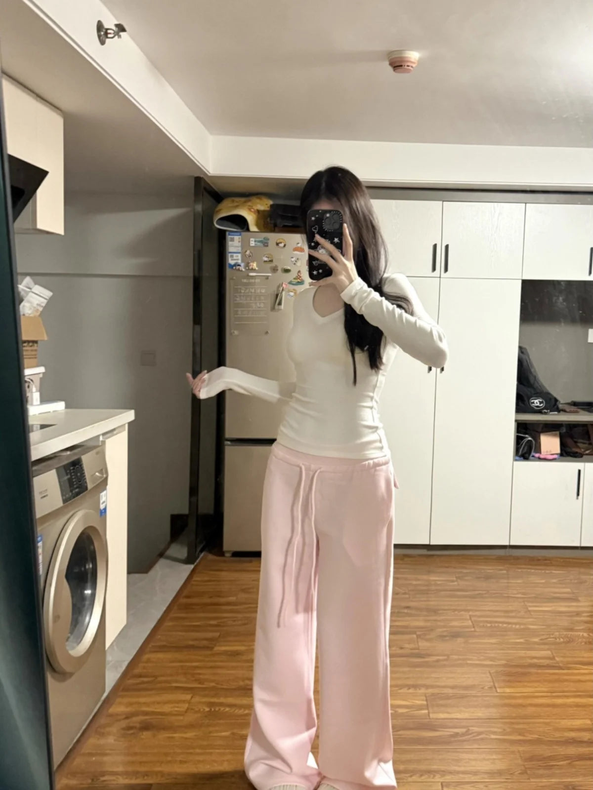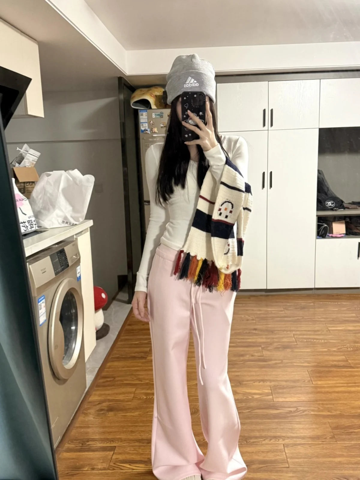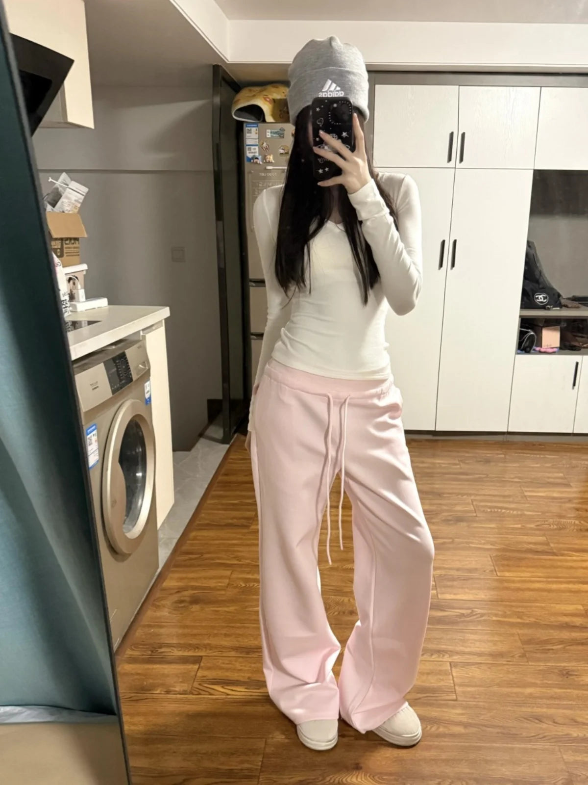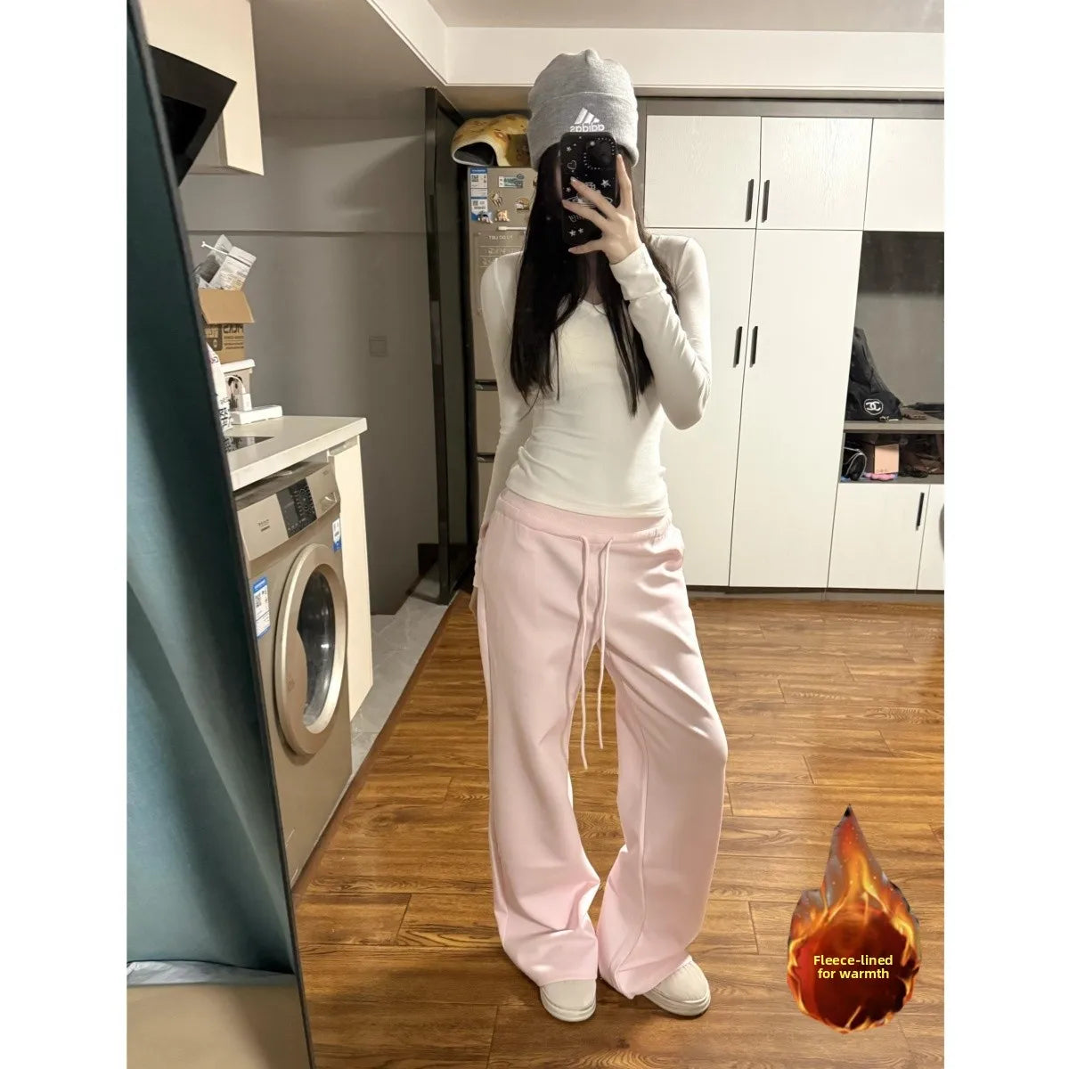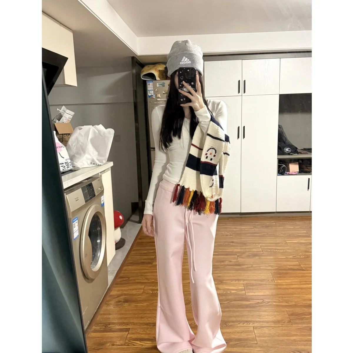 Pink Low Waist Casual Pants Women's Autumn Winter New Sle Micro Flared Pants Fce Thiened Sweatpants Sport Pants Floor-...