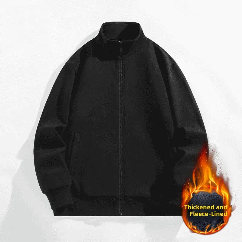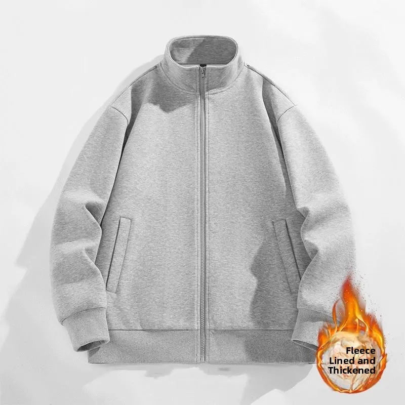 Thiened Fce Sports Jaet Men's Autumn Winter Zipper Hoodl Long Sve Cardigan Casual Sle Youth Faion Pure Color