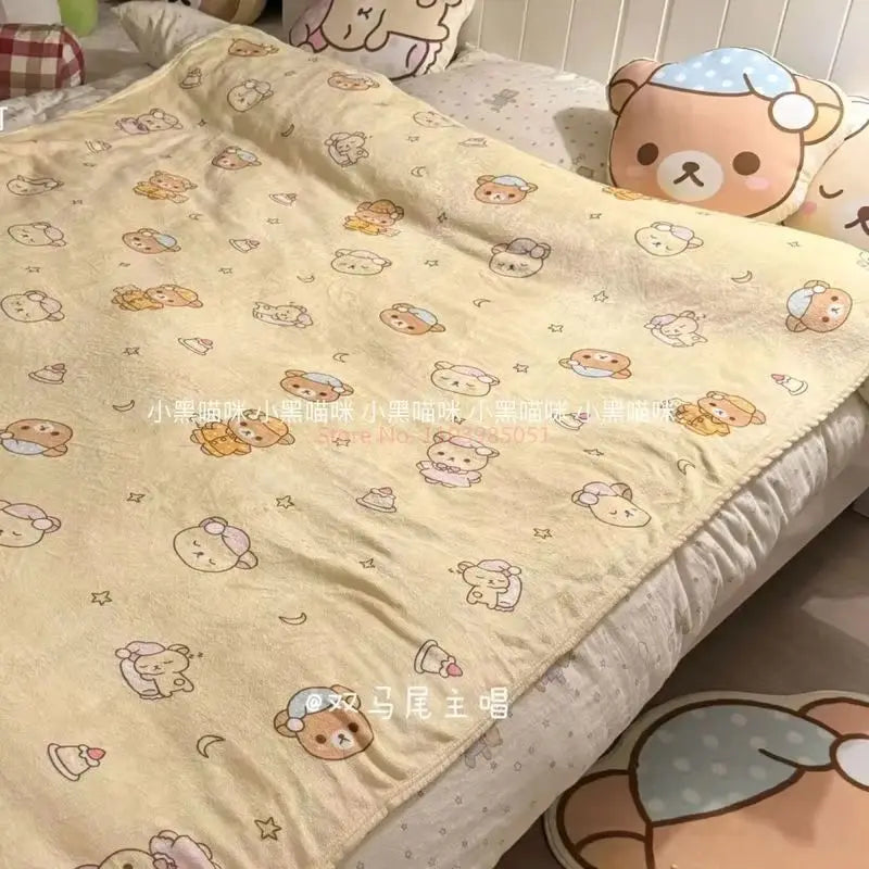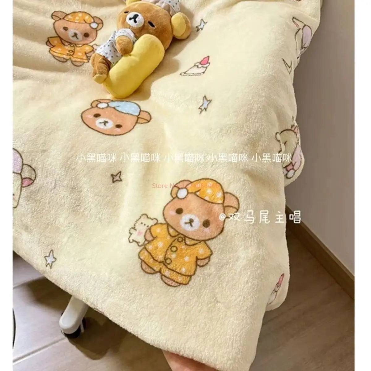 Kawaii Japanese Rilakkuma Plush Blanket Cute Bear Nap Soft Cover Blanket Flannel Dormitory Casual Warm Air Conditioning Blanke