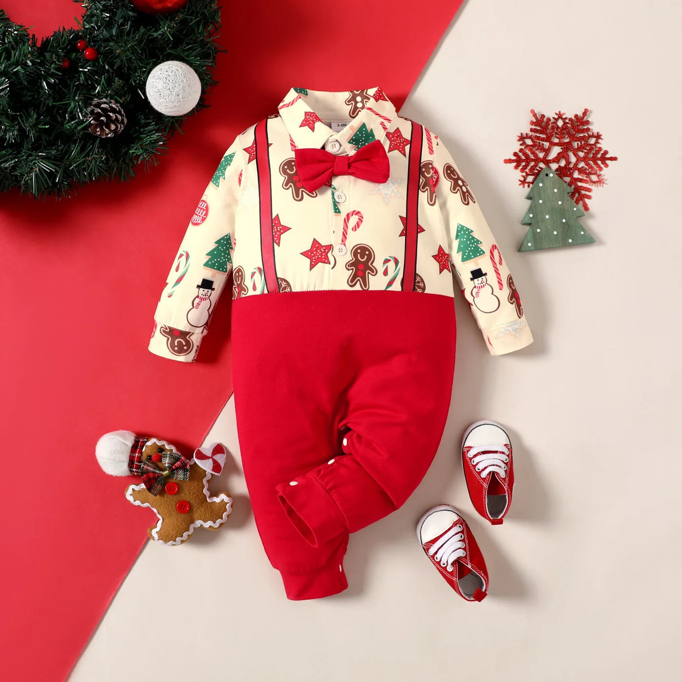 Prowow Baby Christmas Clothes 2025 Cartoon Pattern Green Romper Xmas Jumpsuit For Kids Newborn New Year Baby Costume Boy Girls