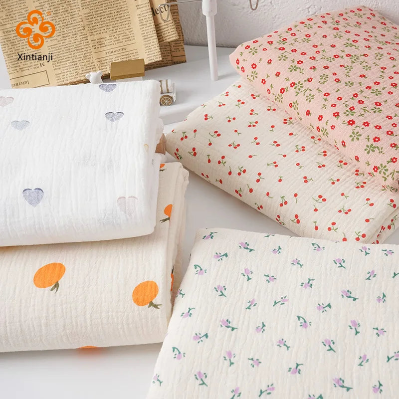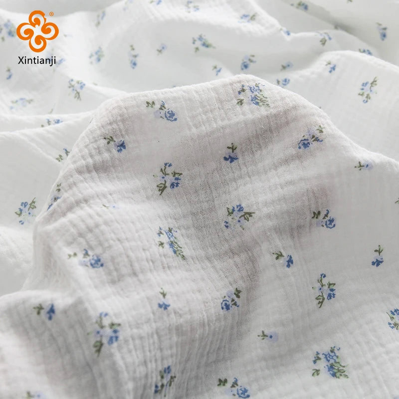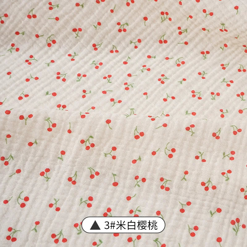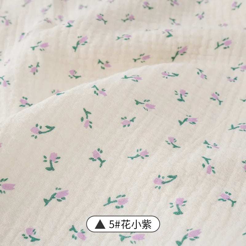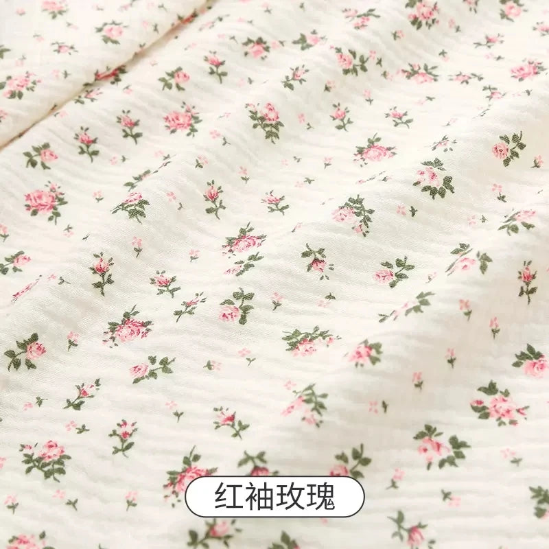 0.5/1/3/5 Meters Soft Floral Pajamas Nightdress Cotton Gauze Fabric Printed Crepe Cotton Long-sleeved Ins Style Homewear Fabric
