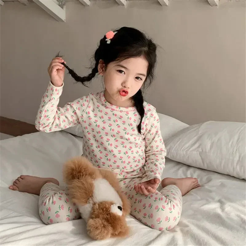Children's Clothing Sets Floral Home Wear Long Sleeve Pajamas Velvet Suit Baby Girl Clothes Boy Clothes Children Thermal Pajamas