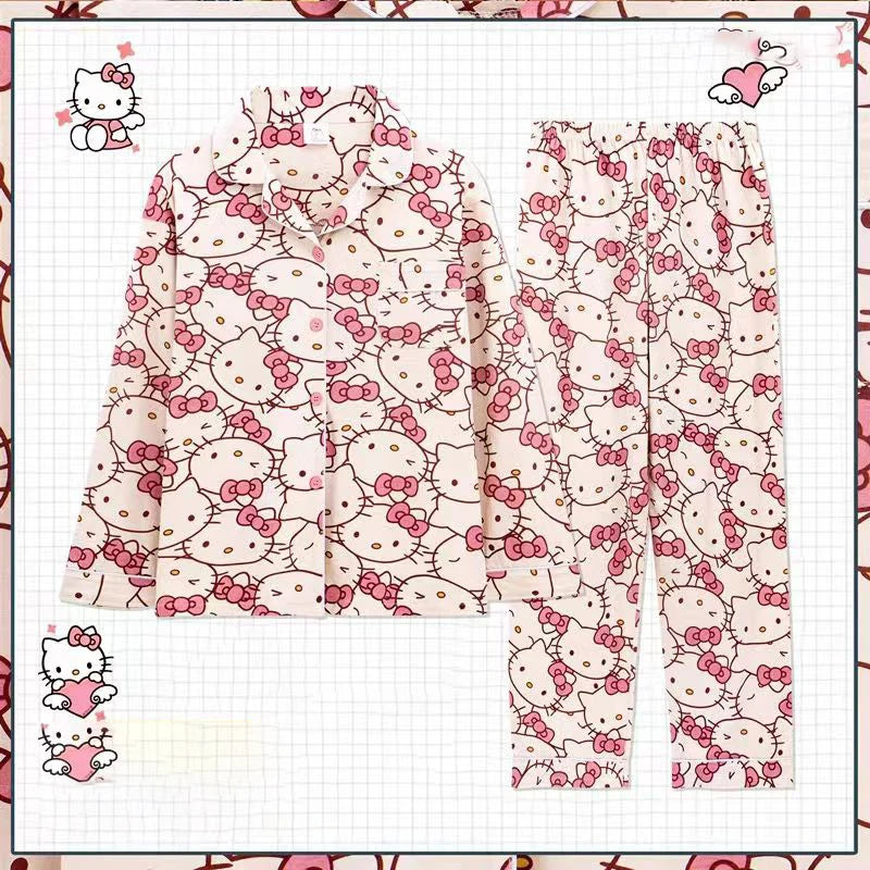 Sanrio Long Pajamas Hello Kitty Kawaii Short Sleeved Loose Sleepwear Pajamas Sets Short Clothes Girl Home Dress Gifts