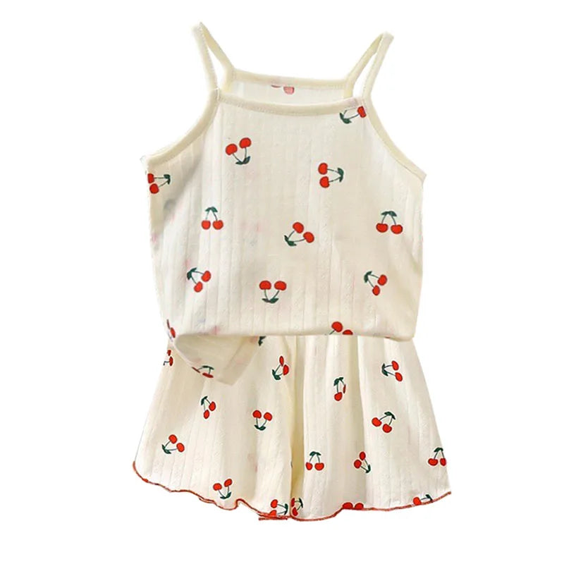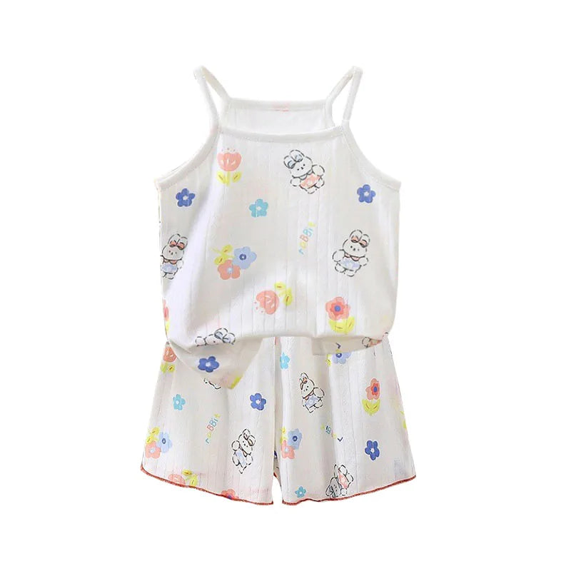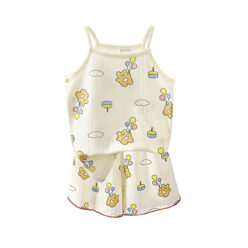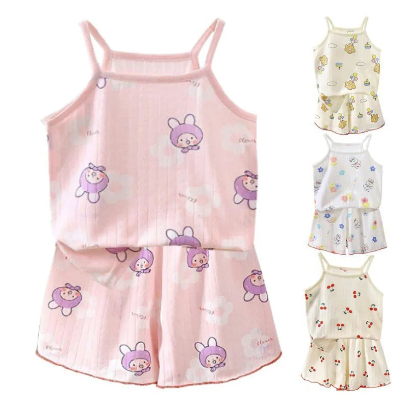 Summer Camisole Sling Tops+Shorts 2-Piece Set Girl's Soft Cotton Pajamas Fashion Cartoon Print Kids Home Clothes Casual Suit New