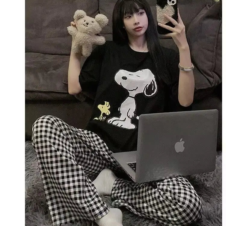 Summer Home Wear Plaid Nine-point Trousers Casual Relaxed Breathable Thin Elastic Waist Trousers Female Students Pajama Pants