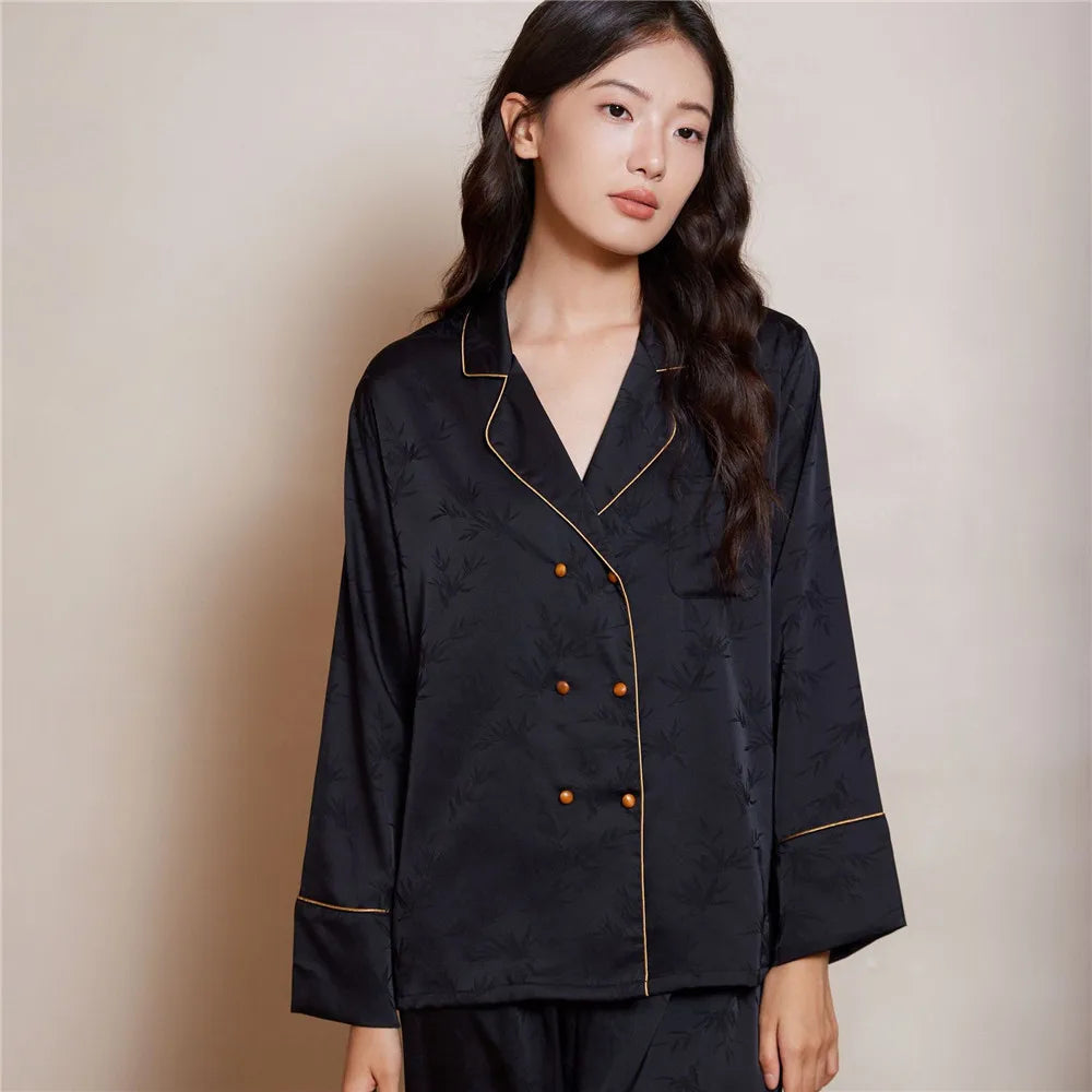 Women Pajamas Set Sleepwear Sexy Double-Breasted Jacquard Satin Pijamas Suit Spring Home Wear Loungewear