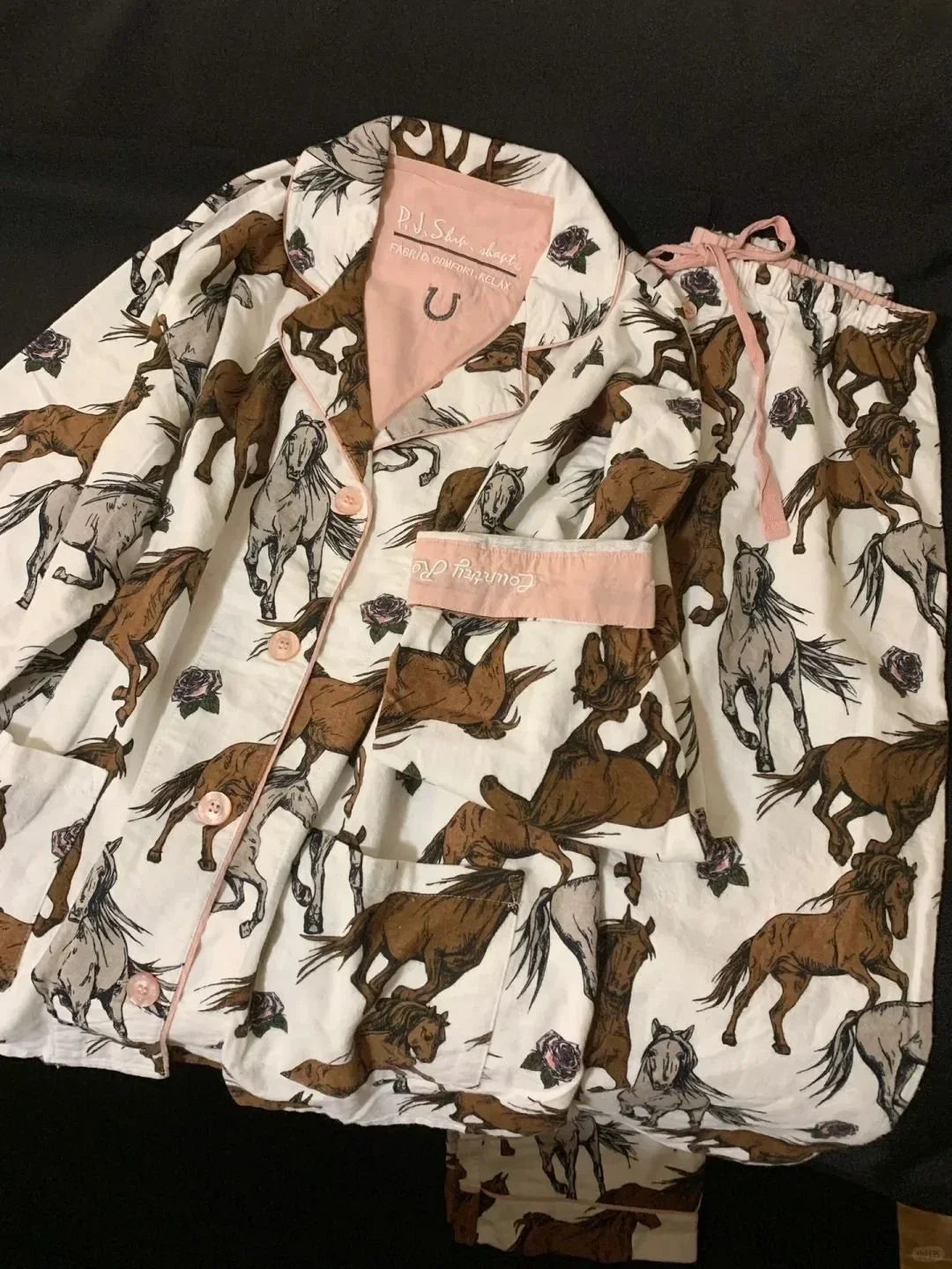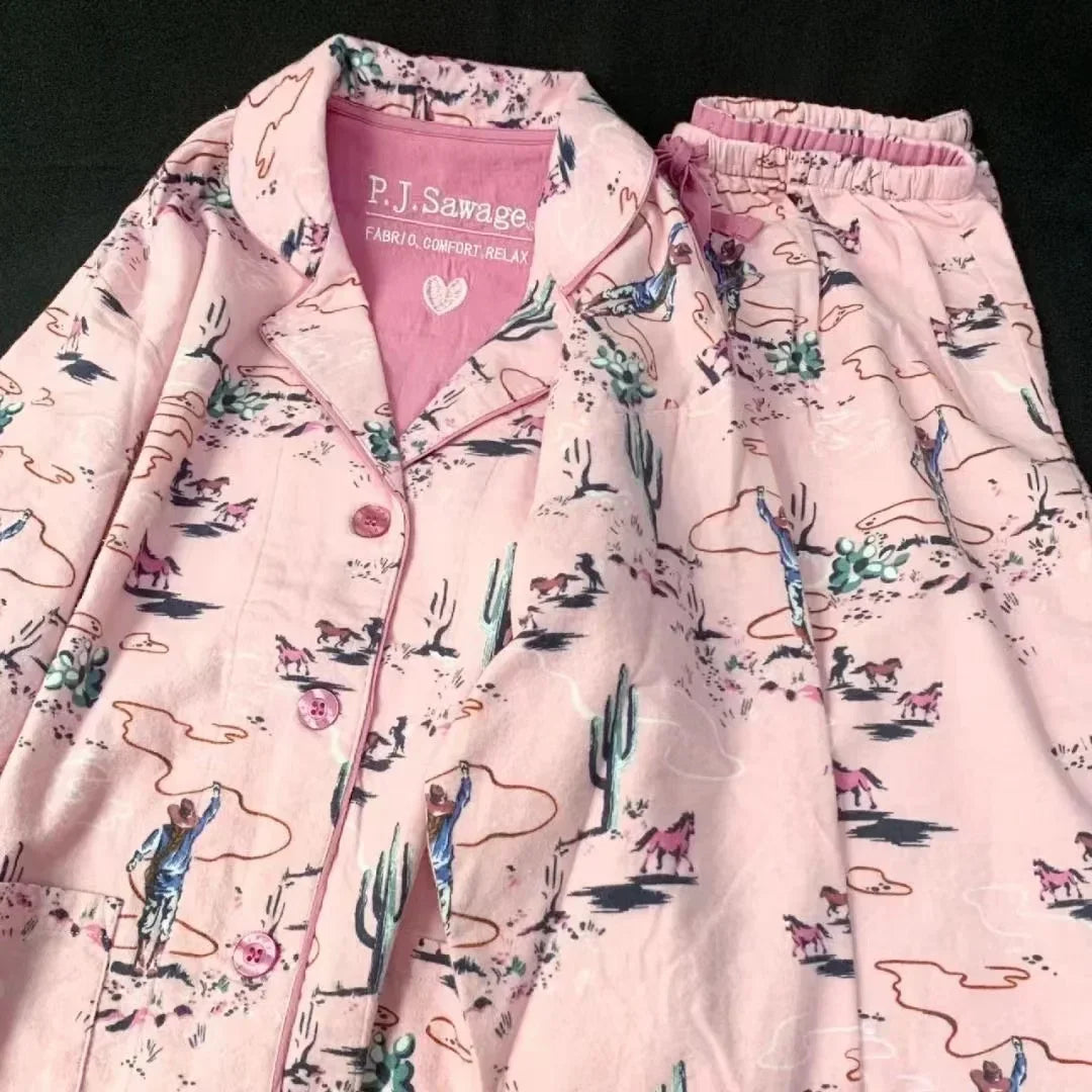 100% Cotton Pajamas for Women Loose Cartoon Long Sleeve Pants Loungewear Women 2 Piece Set Pj Women Outfit Sleepwear Set Pijamas