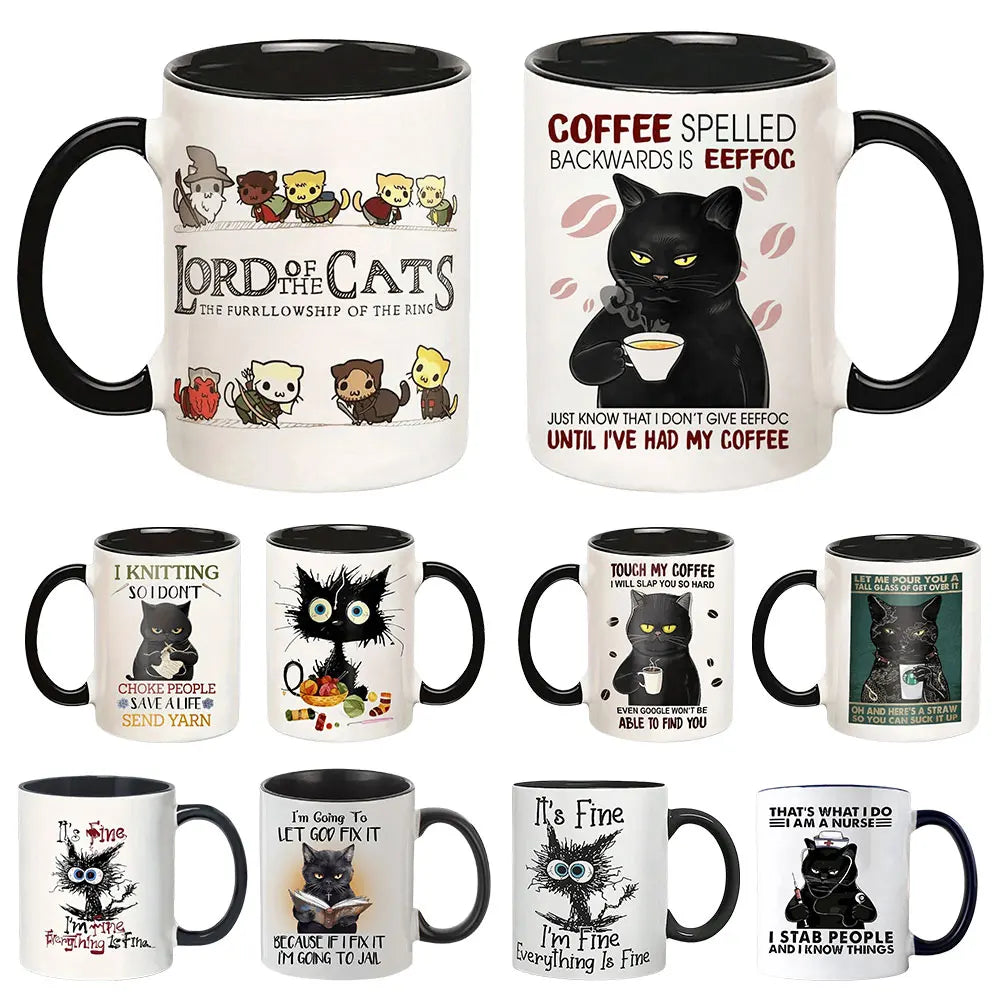 11oz Lord Of The Cats Mug The Furrllowship Of The Ring Cat Lovers Coffee Mug Ceramic Tea Cup for Coffee, Tea and Hot Drinks Gift