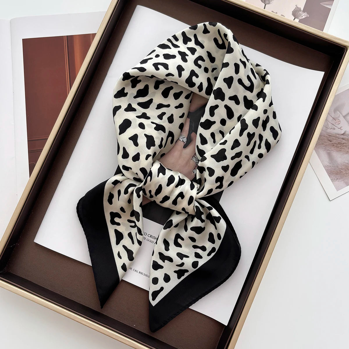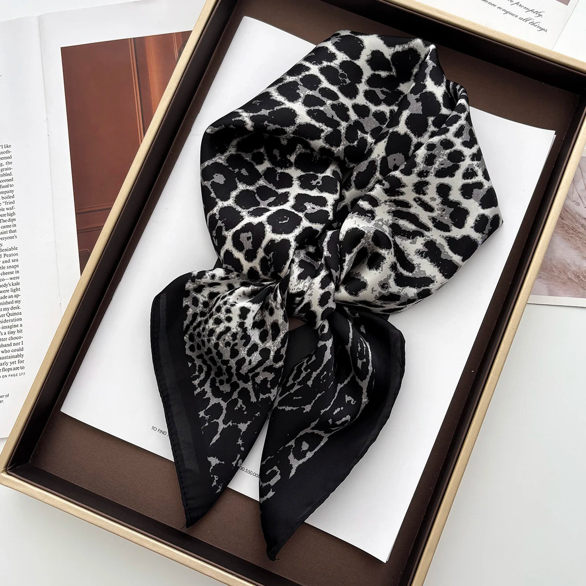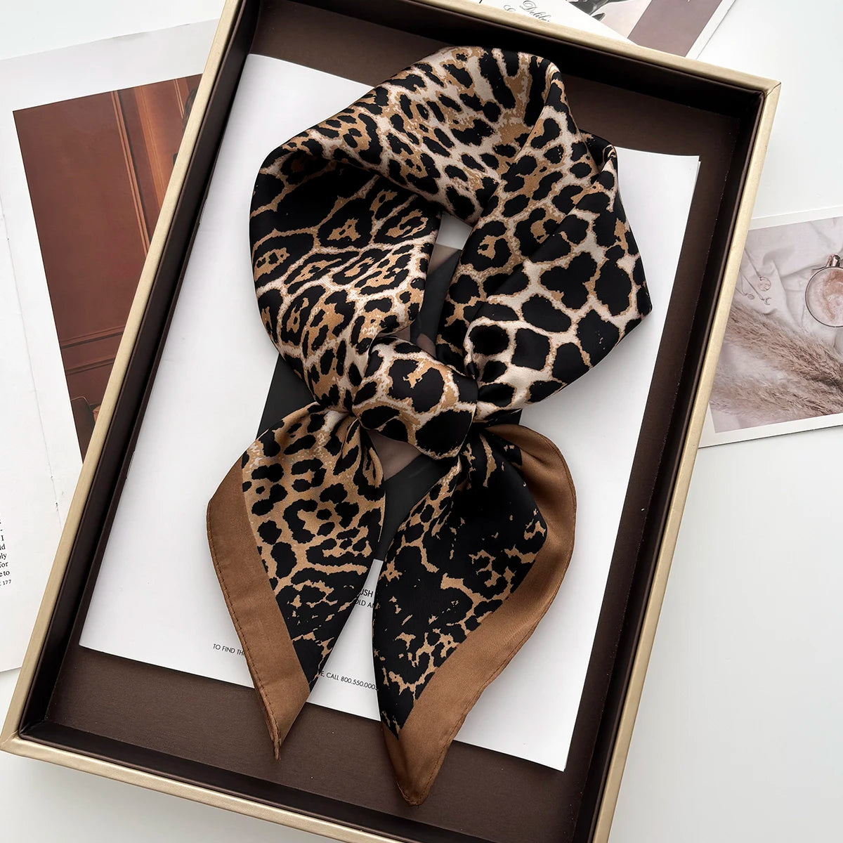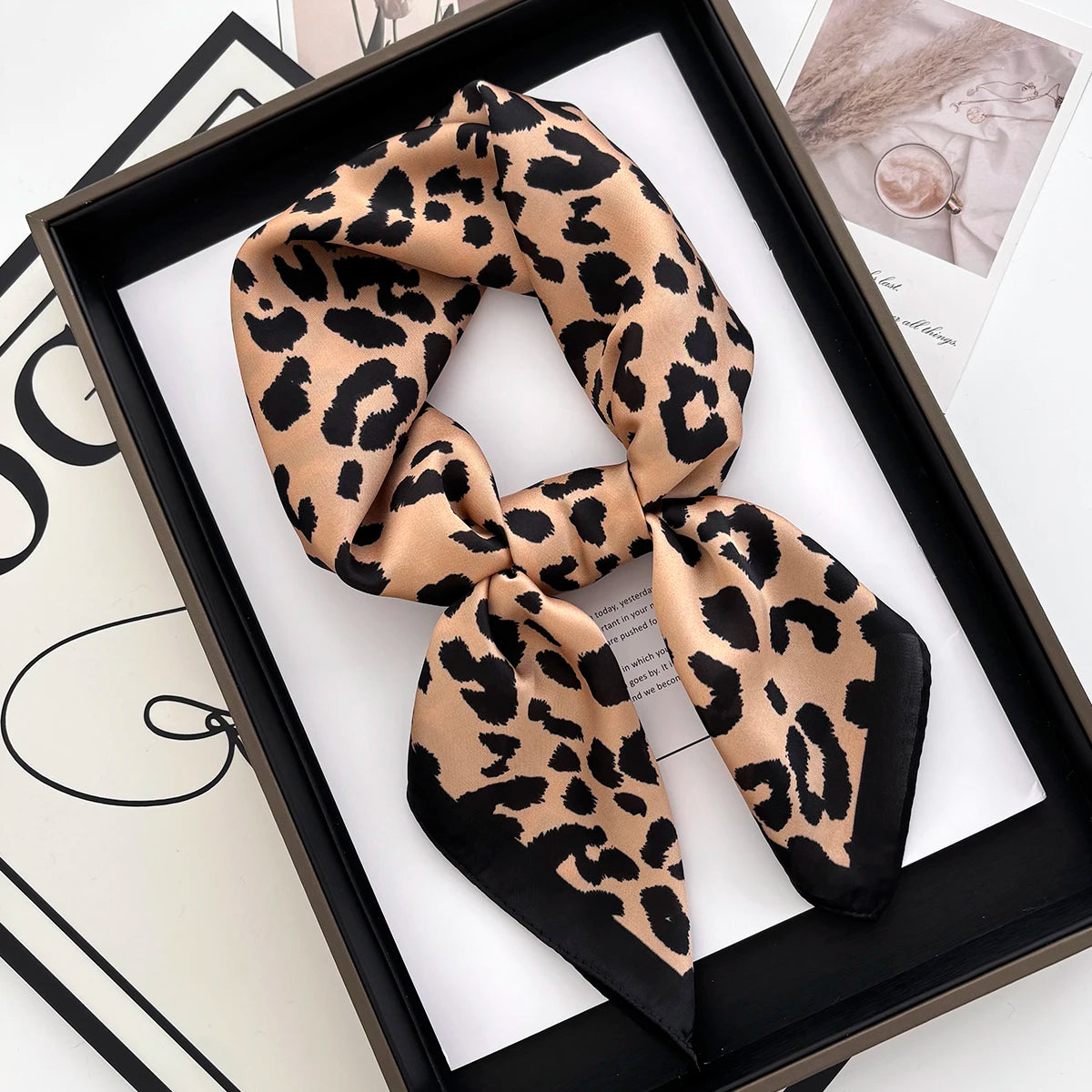 1pc Luxury Brand Leopard Print Bandana Square Scarf Women's Imitation Silk Scarf Casual Versatile Decoration Small Neck Scarf