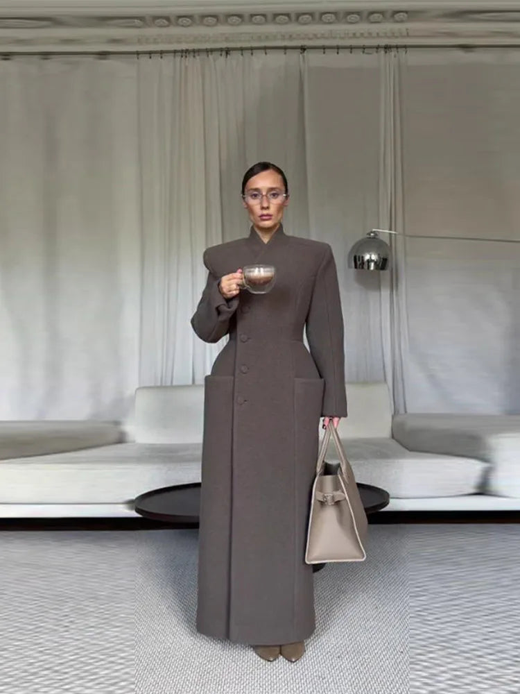 Women's Elegant Black Maxi Overcoat Single Breasted Cinched Waist Tailored High Street Outerwear Fashion Female Casual Outfit