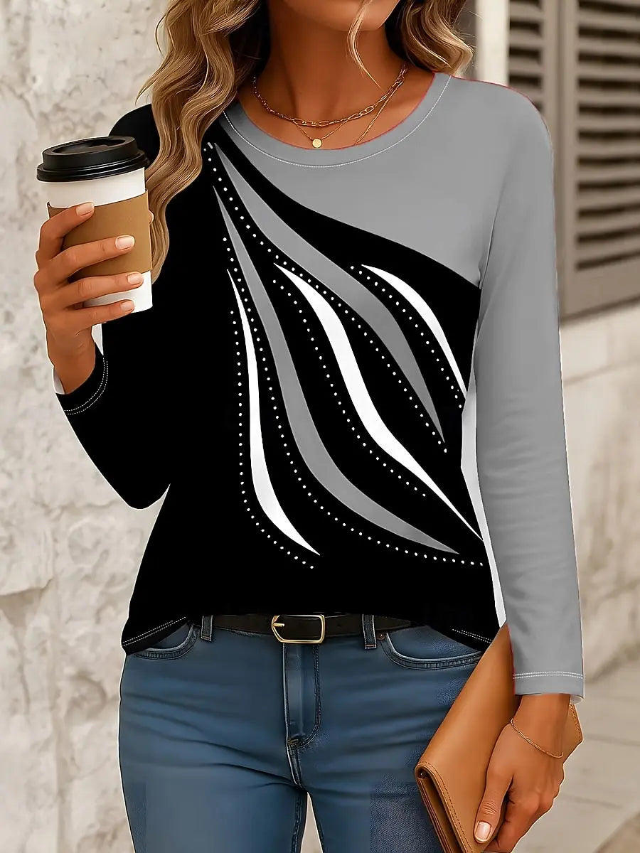 Women's T-shirt Casual Long Sleeve Tops Geometric Abstract Graphic Tees Shirts Blouse O-neck Fall Winter Streetwear Pullover
